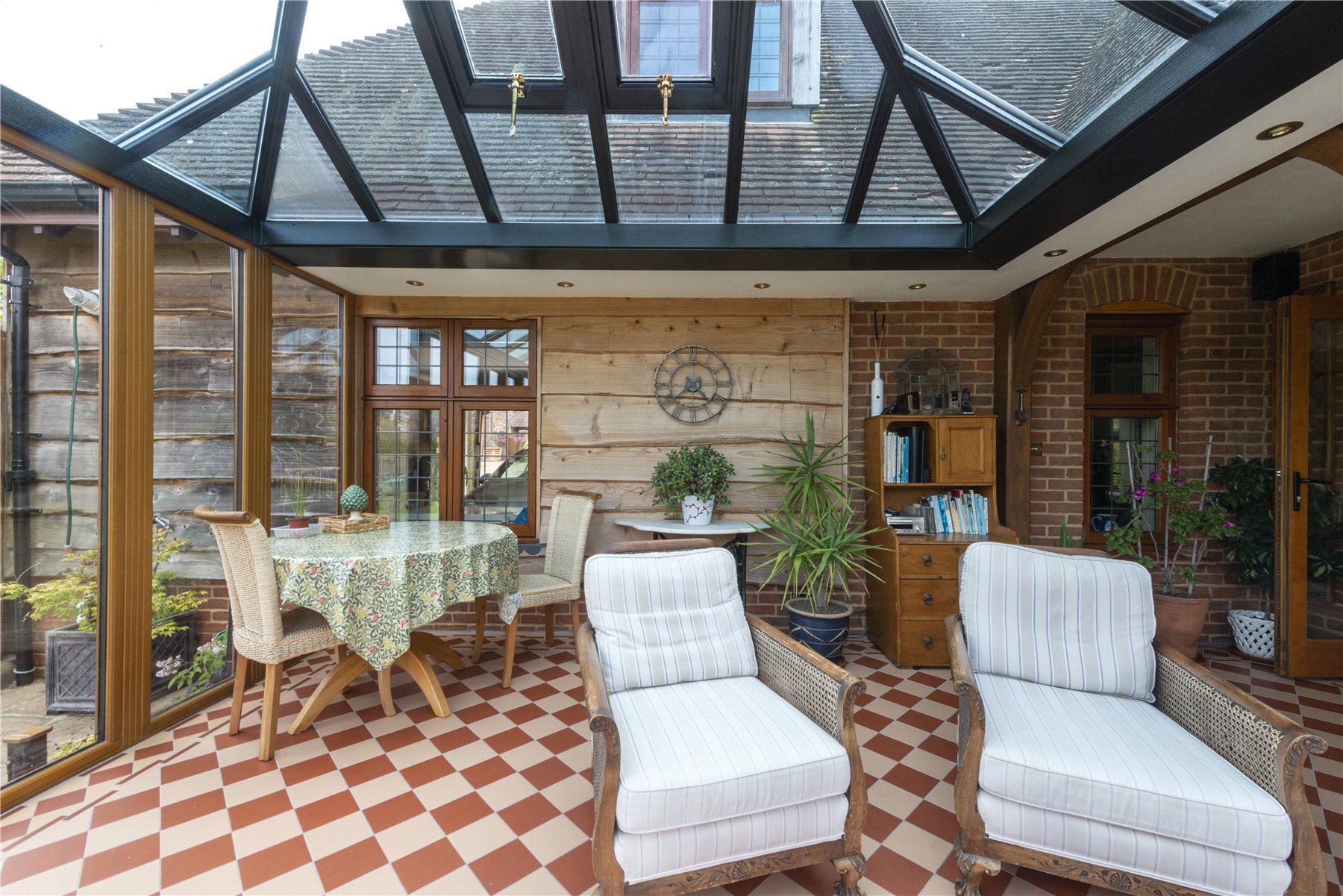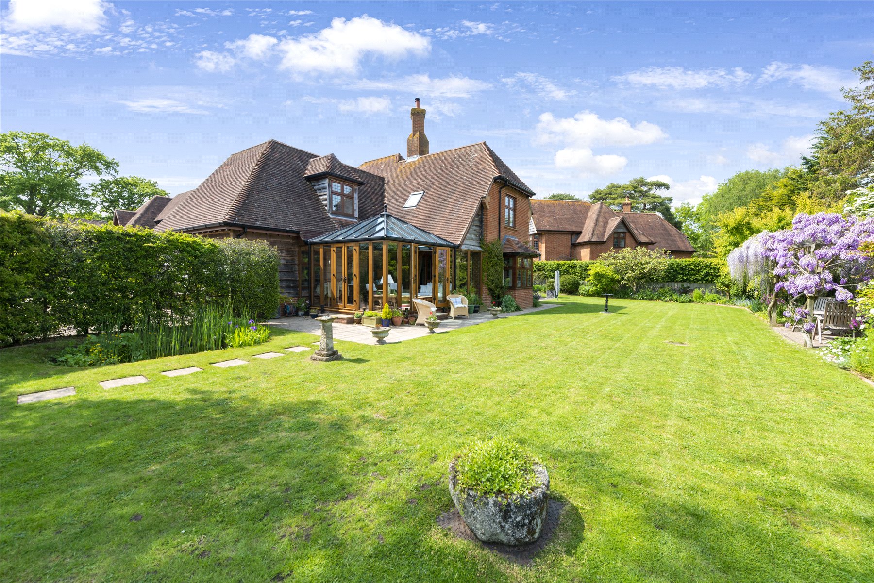 From here you can access the stunning REAR GARDEN. This is an absolute delight, areas of lawn and a PATIO, which run around the house, further seating areas, one under a wonderful Wisteria arbour, a wildlife POND a picket fenced 'potager' for the green fingered who love to grow their own vegetables which sits beside a generous POTTING SHED. The garden seems to wrap around the house and perfectly completes this superb property.
