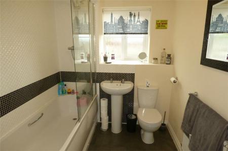 Having a modern white suite comprising a panelled bath with shower fitment over, pedestal wash hand basin and low level WC. Central heating radiator and upvc sealed unit double glazed window.