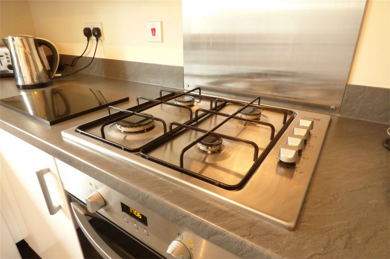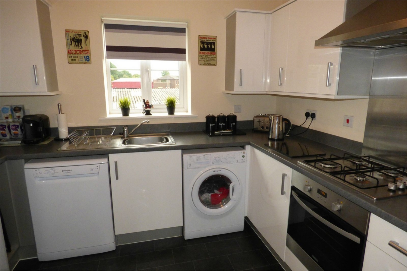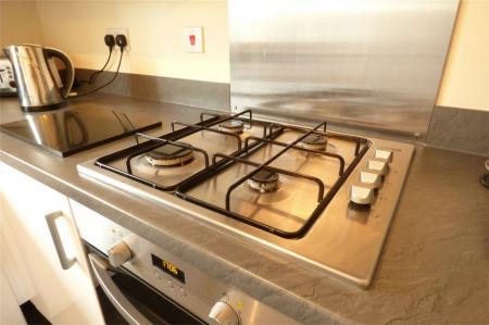 Having a single drainer stainless steel sink with mixer tap, fitted base unit, additional base cupboards and drawers with work surfaces over and fitted wall cupboards. Built-in oven, hob and extractor hood. Plumbing for an automatic washing machine, built-in cupboard housing the gas fired boiler and upvc sealed unit double glazed window.