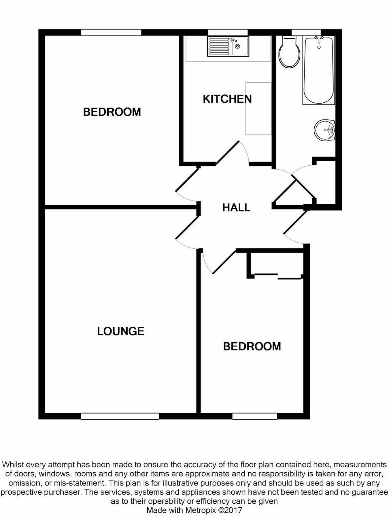 The accommodation briefly comprises: Hall, lounge, kitchen, two bedrooms and bathroom. Garage in block and communal gardens. EPC rating F.
