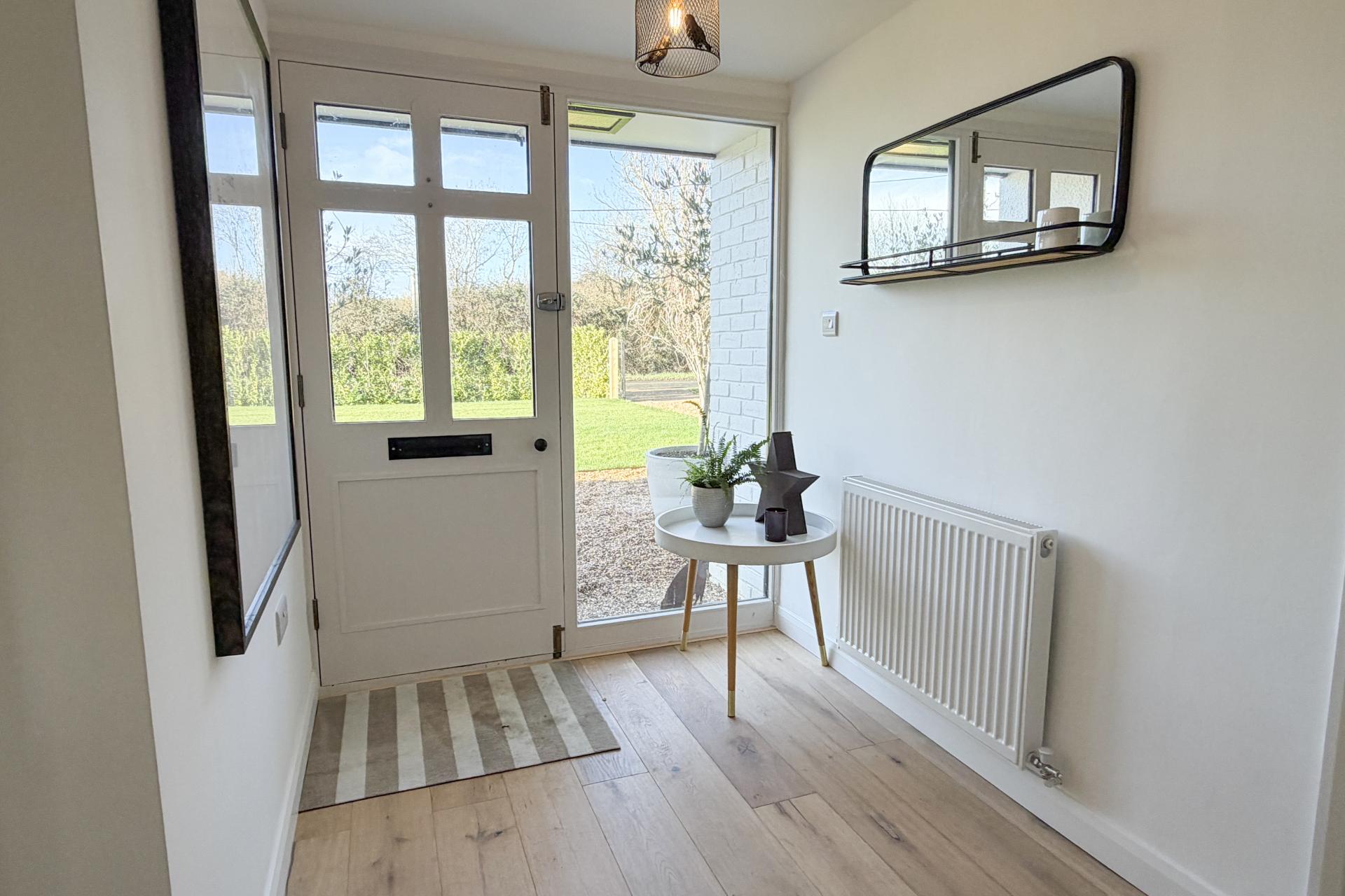Outside, the property enjoys a wide corner position with mature lawned gardens to the front and rear, enclosed by timber fencing and backing onto open fields. A gravelled driveway provides parking for several vehicles. This is a thoughtfully upgraded and carefully maintained home, ready to move into and ideal for buyers seeking charm, space, and flexibility in a peaceful village or semi-rural setting.