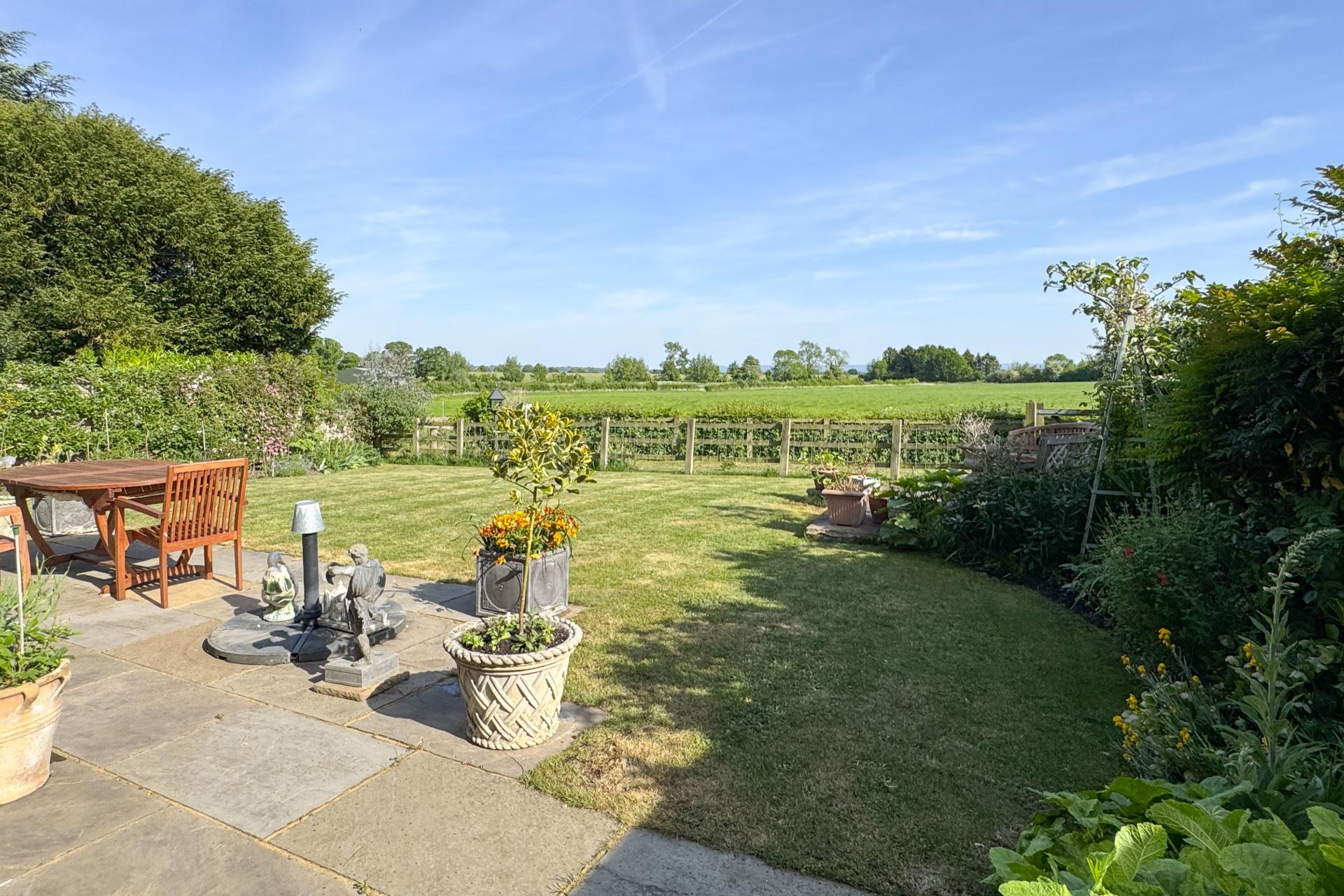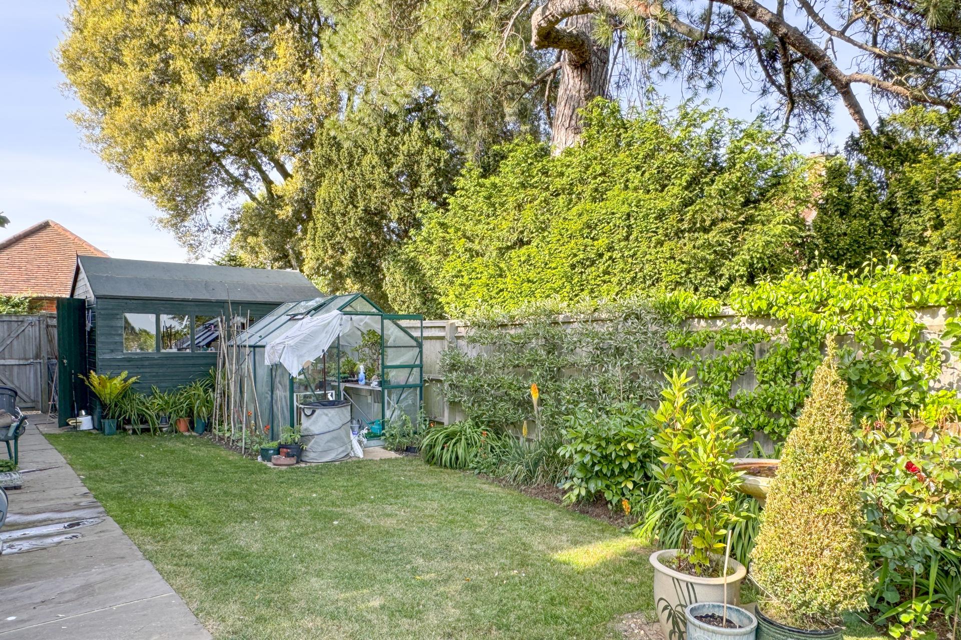 Externally, the south-west facing garden is thoughtfully landscaped with a large patio, lawn, mature planting, a greenhouse and shed. A gated area at the end leads to a peaceful nature reserve. The property also benefits from a large garage with electric supply.