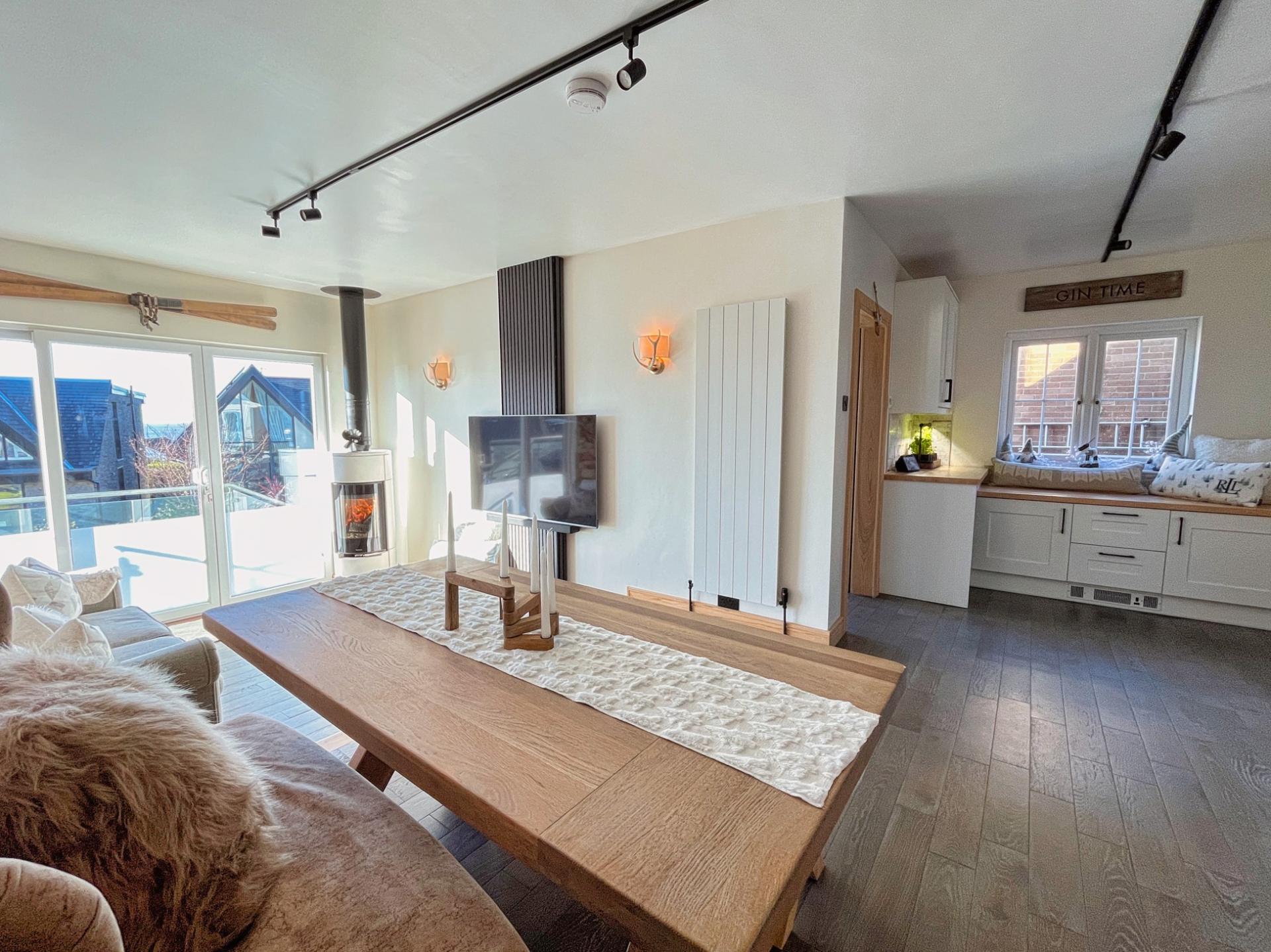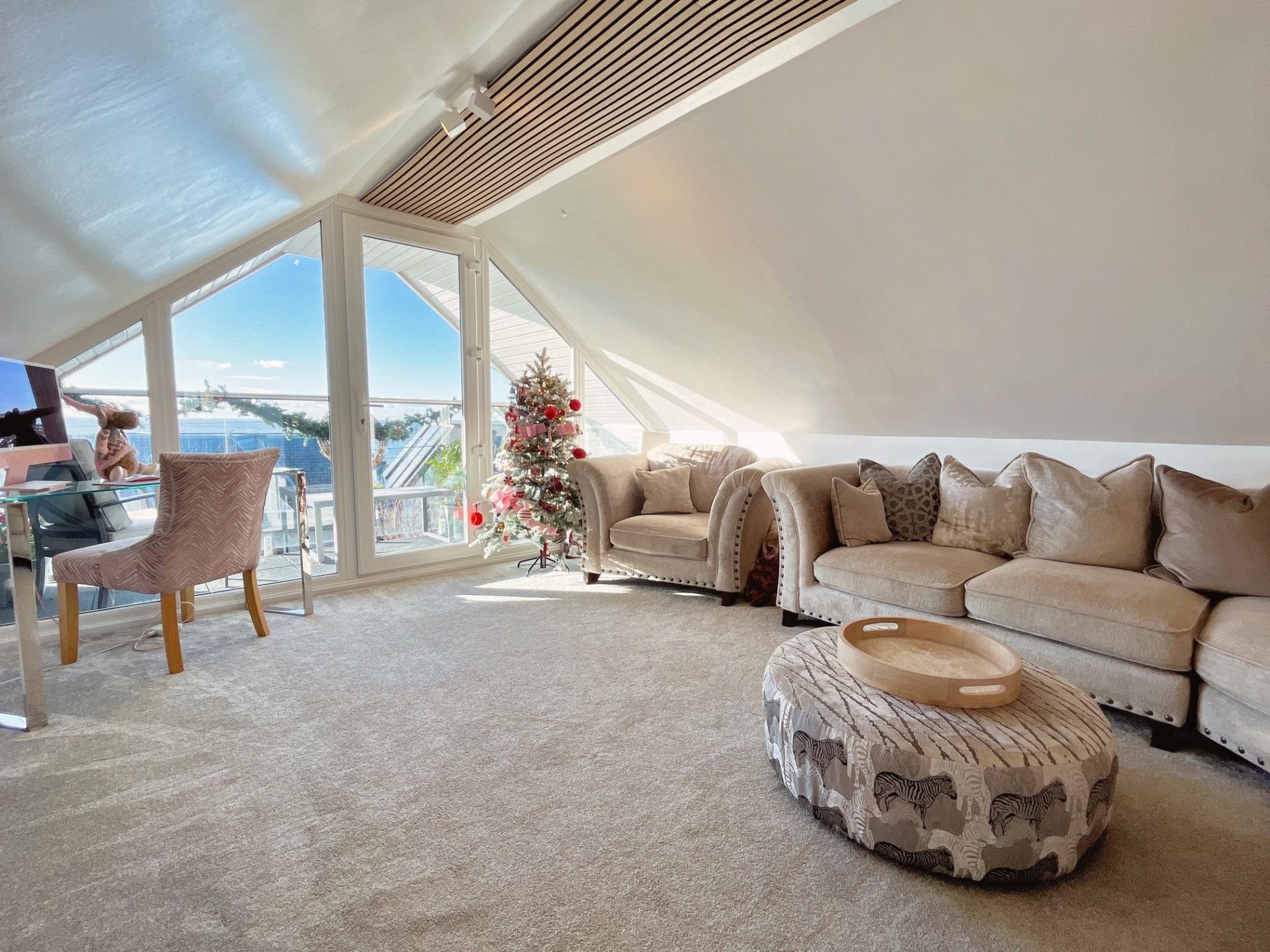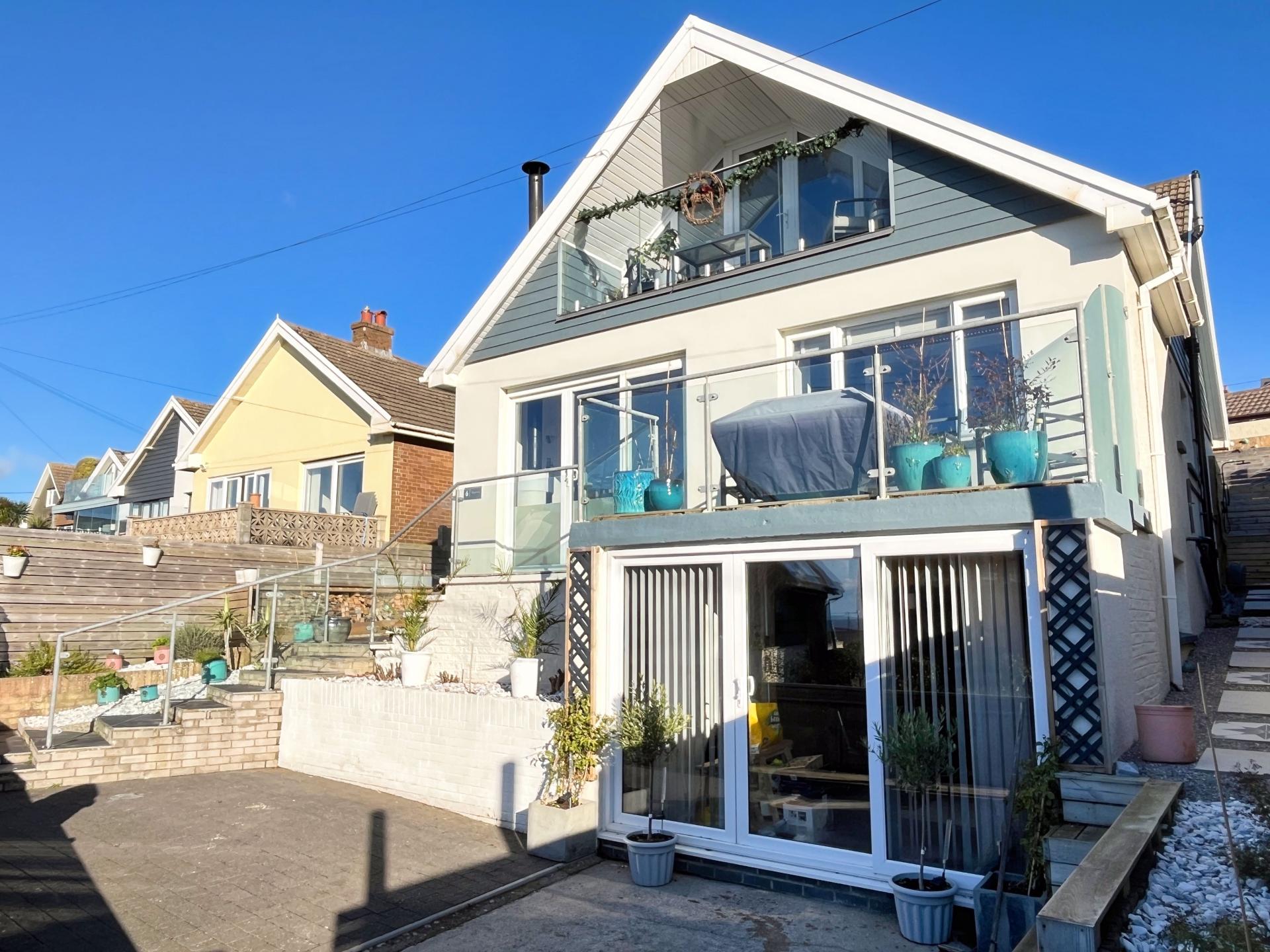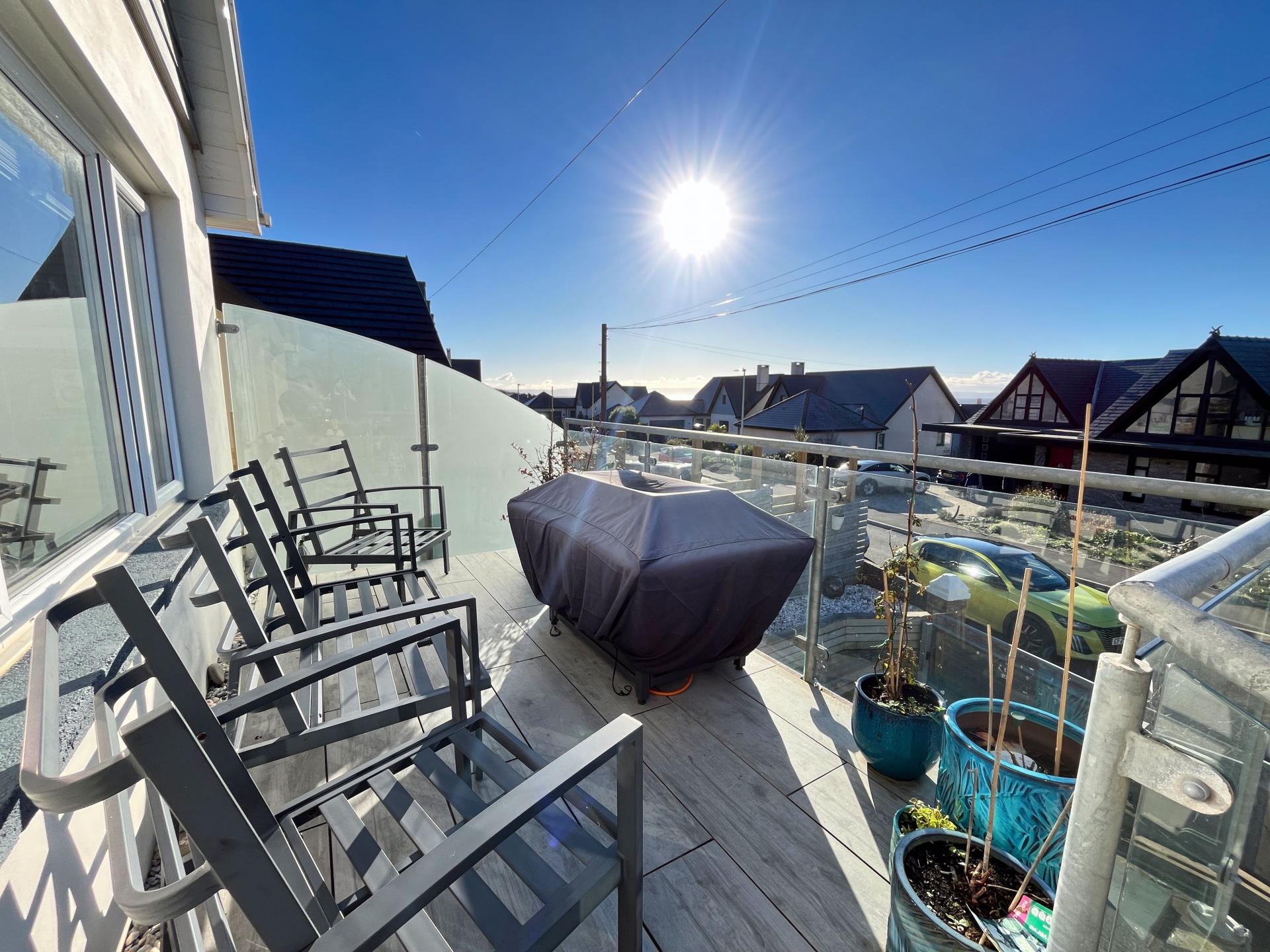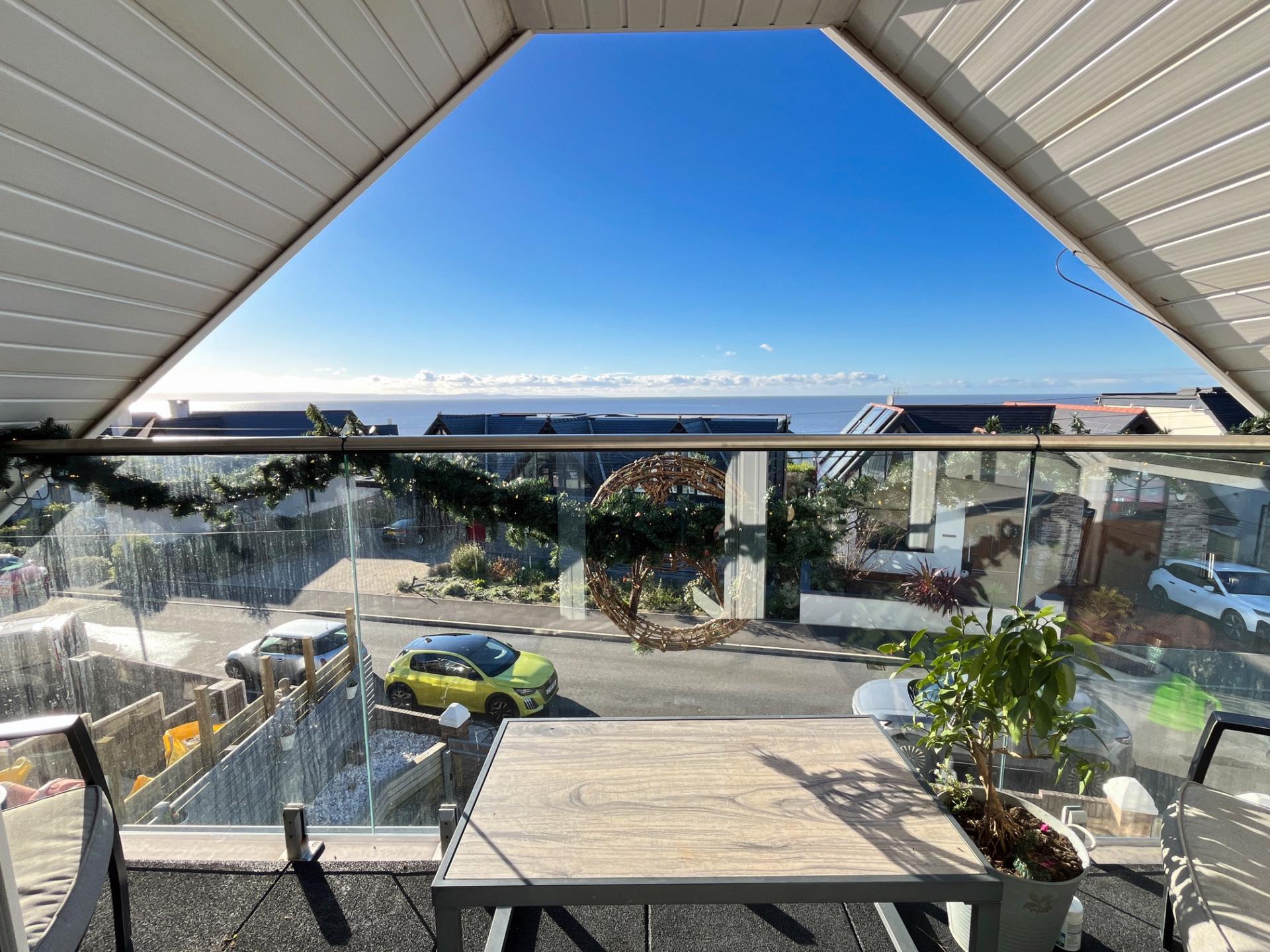 - Entrance hall, open plan kitchen to dining space, lower living room and first floor sitting room both enjoying glazed direct balcony access with coastal views
