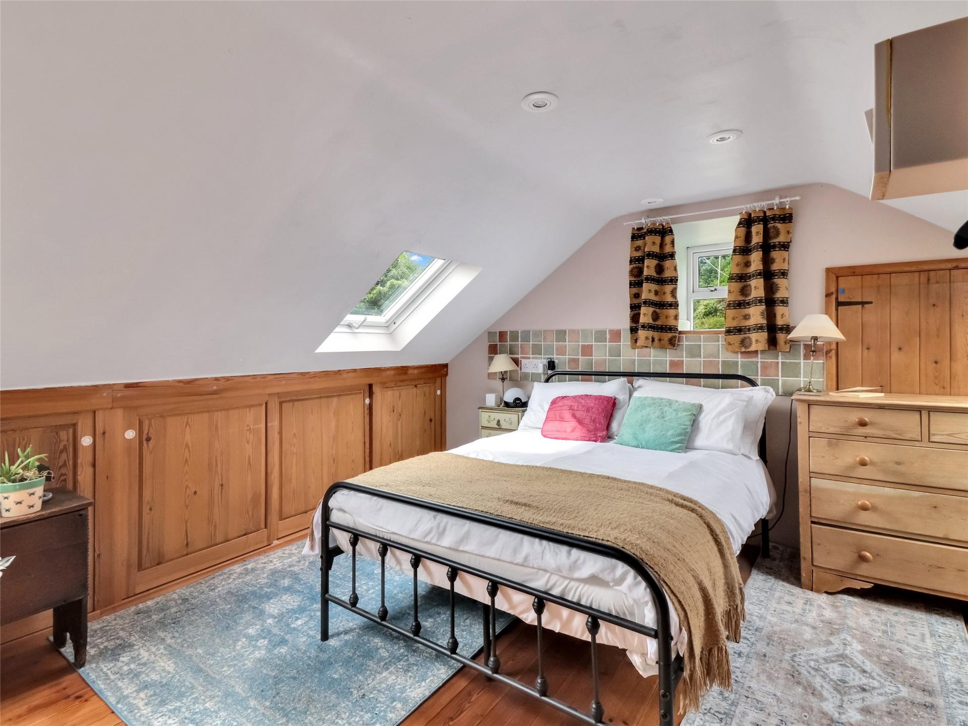 Stairs lead from the sitting room and splits in two with one set leading to a lovely double bedroom with ensuite shower room both rooms having countryside views. In the other direction the stairs lead to a generous sized stripped plank floored galleried landing which is currently used as a library/study/quiet space. Also, on this floor are two further double bedrooms and an updated bathroom with three-piece suite.