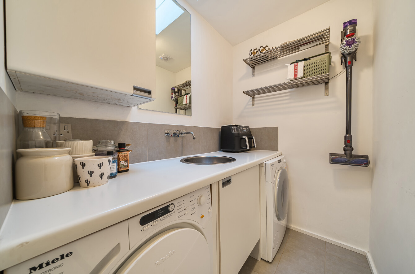 On entering the property, you are greeted by a welcoming hallway with ample storage space which lead through to the spacious open plan living and dining areas flooded with an abundance of light from the full height sliding doors. These in turn open out to the patio area. The bright and modern kitchen is fitted with an array of wall and base units incorporating Miele appliances and additionally, there is useful utility room. There are three double bedrooms, the master bedroom benefits from a spacious dressing area with floor to ceiling wardrobes providing an abundance of storage space, a built in dressing table with lighting, plus a modern en-suite shower room. Two further bedrooms, one overlooking the courtyard patio area, and the modern family bathroom complete the internal accommodation.