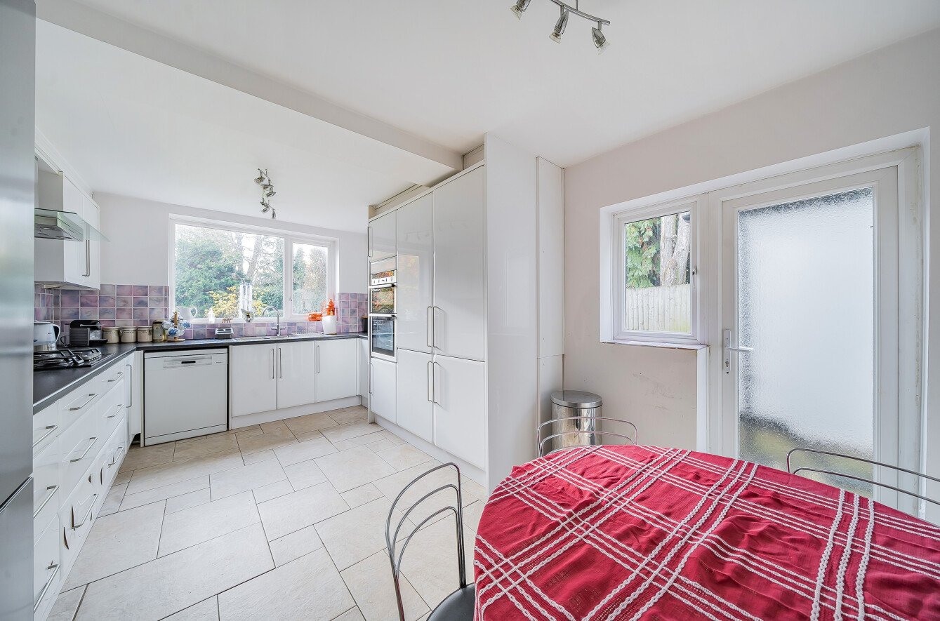 Situated in an enviable location is this 1930s built four bedroom detached property offered for sale chain free and with ample scope to extend both to the side and rear STPP. The accommodation to the ground floor comprises a hallway with an under stairs storage cupboard plus a large store room as well as a large ground floor shower room/wc. The spacious front reception room has a bay window overlooking the front aspect and a feature fireplace with twin windows either side. This opens into the rear reception room which is flooded with light from the high window to the side and the full width sliding patio doors. The bright and spacious kitchen/diner benefits from an array of white gloss wall and base units providing ample storage, with built-in appliances. Windows overlook the side and rear garden with a glazed door giving access to the side. A new boiler was fitted in November 2024.