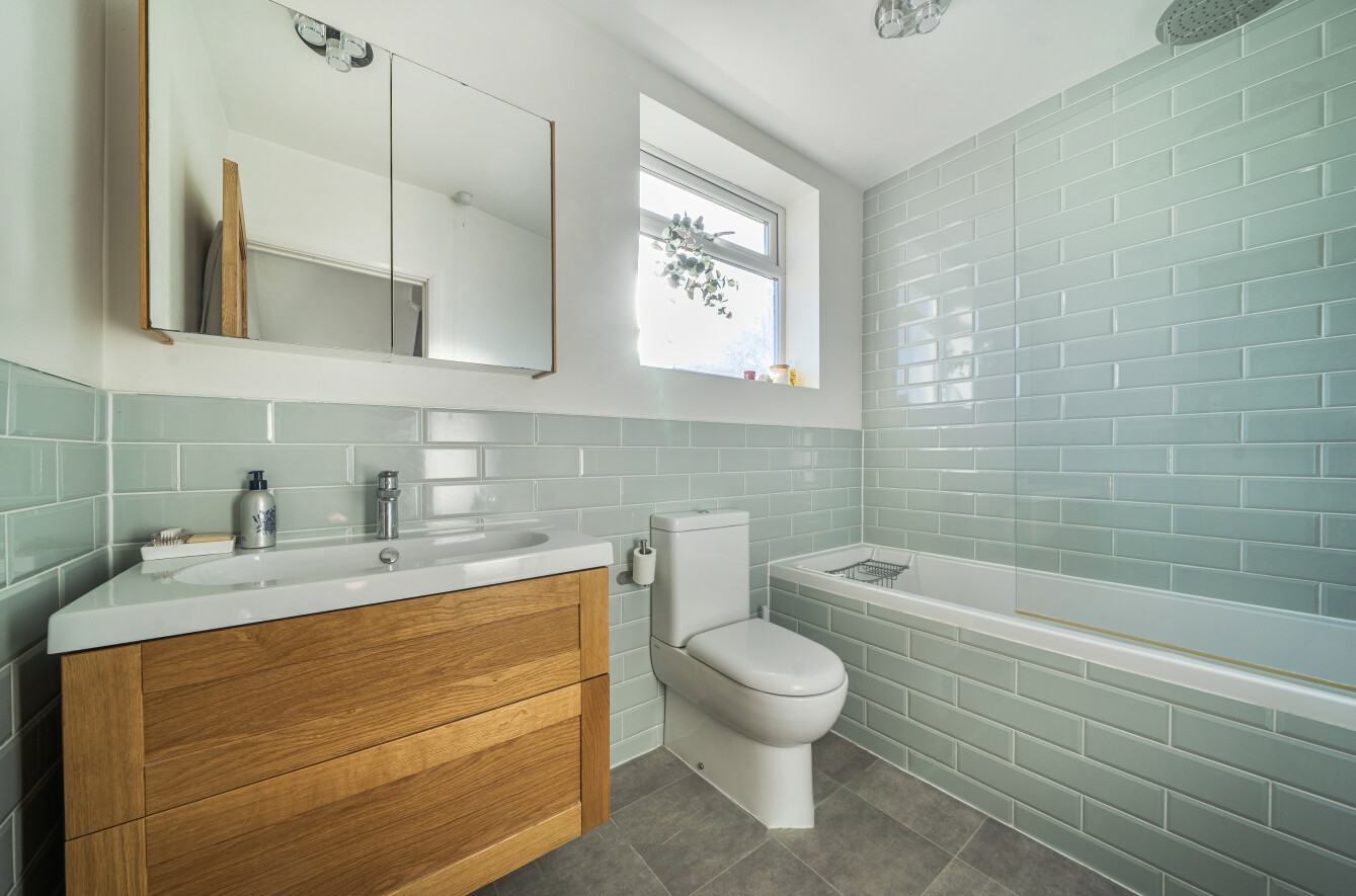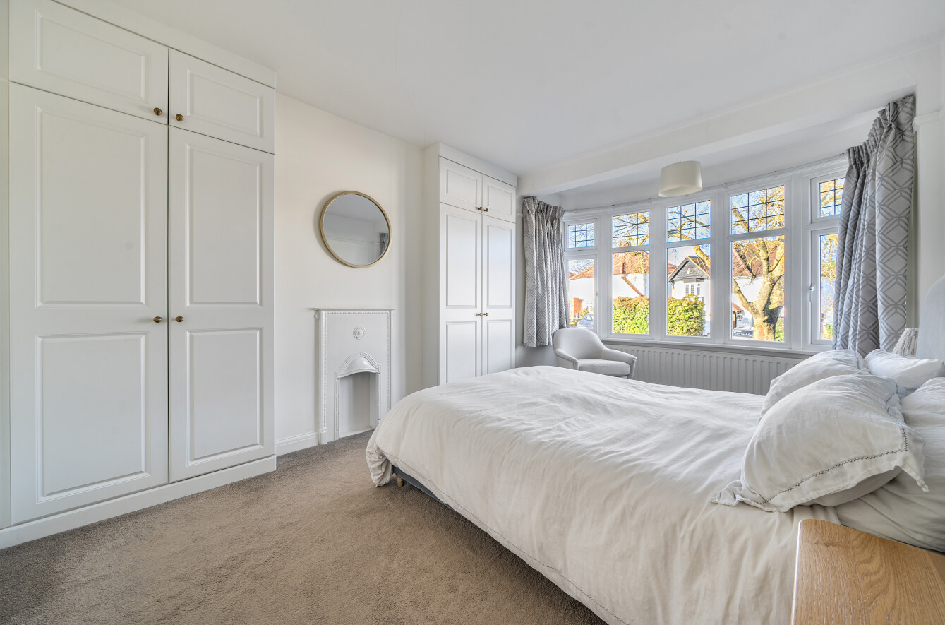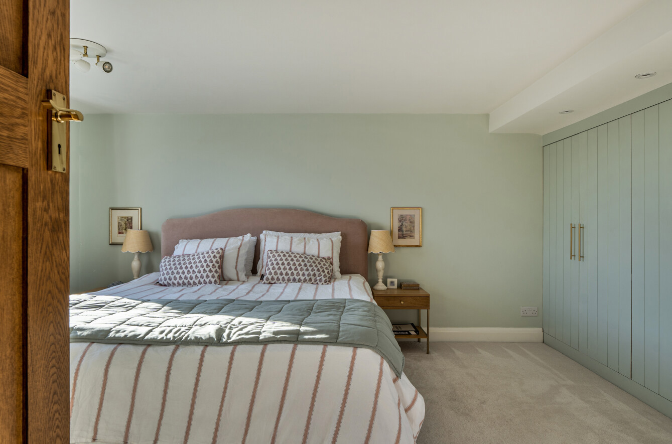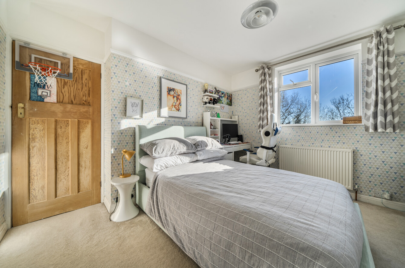 The top floor boasts a master suite overlooking the south facing rear garden, floor to ceiling bespoke fitted wardrobes, eaves storage and a modern en-suite shower. This room provides the perfect oasis away from modern family living.