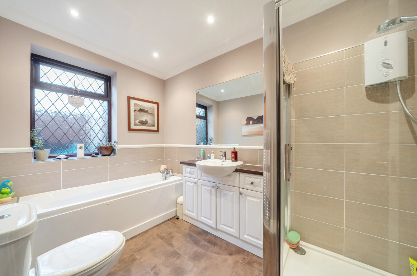 To the first floor, buyers will find a spacious landing which has an area utilised as study/office space. There are three comfortable double bedrooms. The main bedroom boasts an en-suite shower room and ample eaves storage. The eaves storage space runs the whole width of the property and can also be accessed from bedroom four and the landing. The four-piece family bathroom completes the accommodation to this floor.