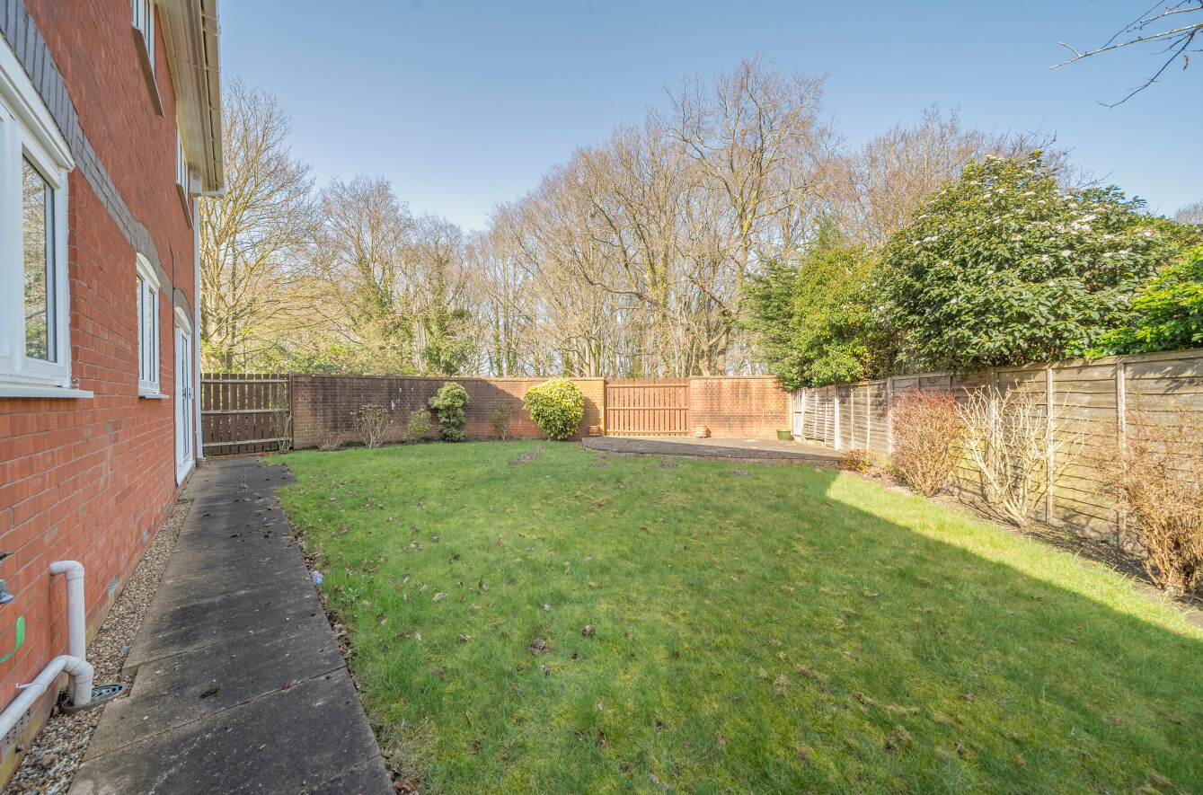 The rear garden has a secluded feel and backs onto Newstead Woods. It is laid to lawn with a paved seating area to the far end and bordered by mature shrubs.
