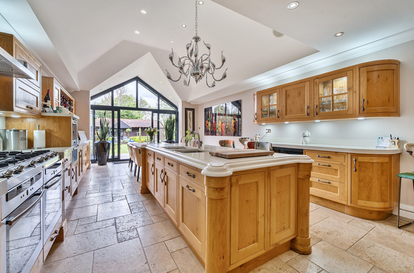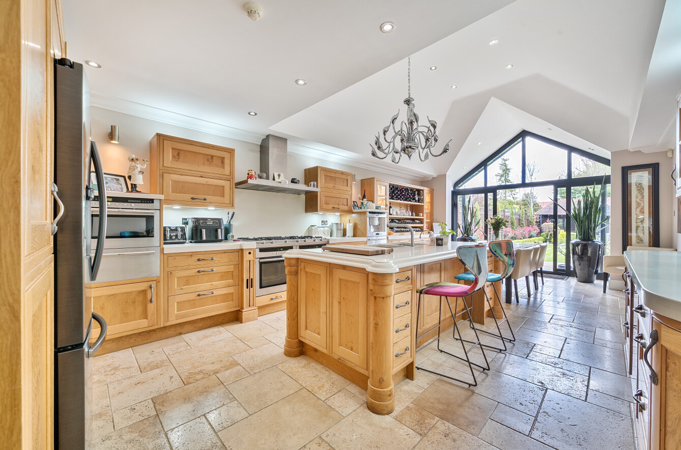 The heart of the home is the stunning kitchen/dining room which has been beautifully designed by Stoneham with a comprehensive range of units, central island with breakfast bar, marble work surfaces and a range of built in appliances. The kitchen is complete with a vaulted ceiling and the floor to ceiling windows with sliding doors provide a seamless connection to the landscaped rear garden.
