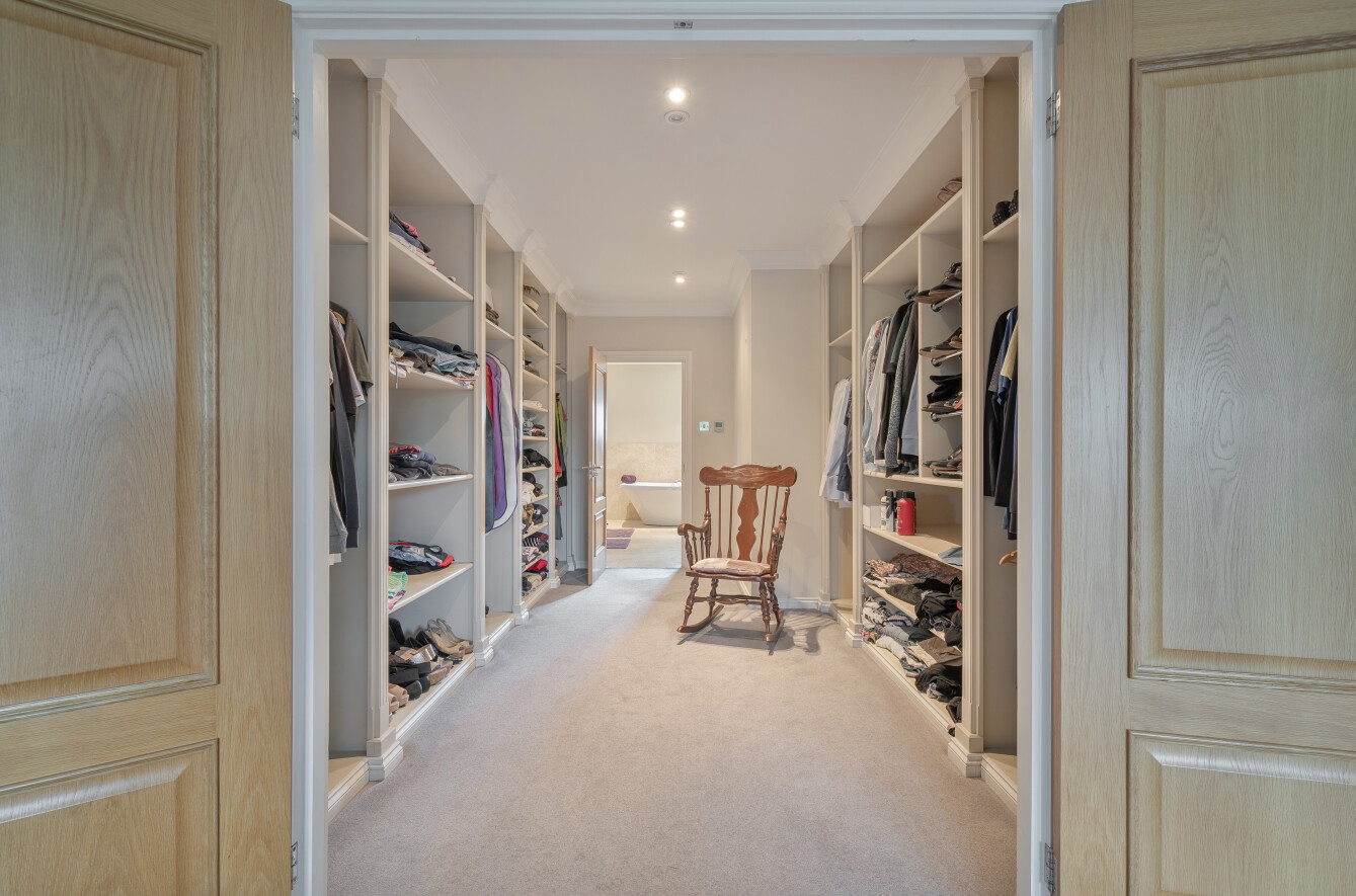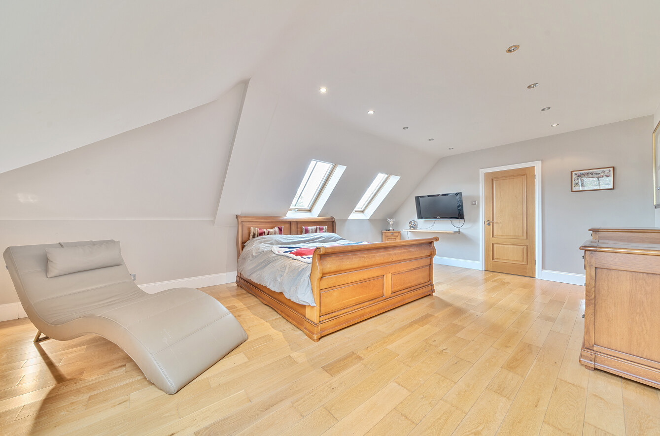 On the first floor, there are three impressive bedroom suites, each with its own en-suite facilities. The magnificent master suite spans the full depth of the house and features a Juliet balcony overlooking the rear garden and has a large walk-in wardrobe and a beautifully appointed en-suite bathroom.