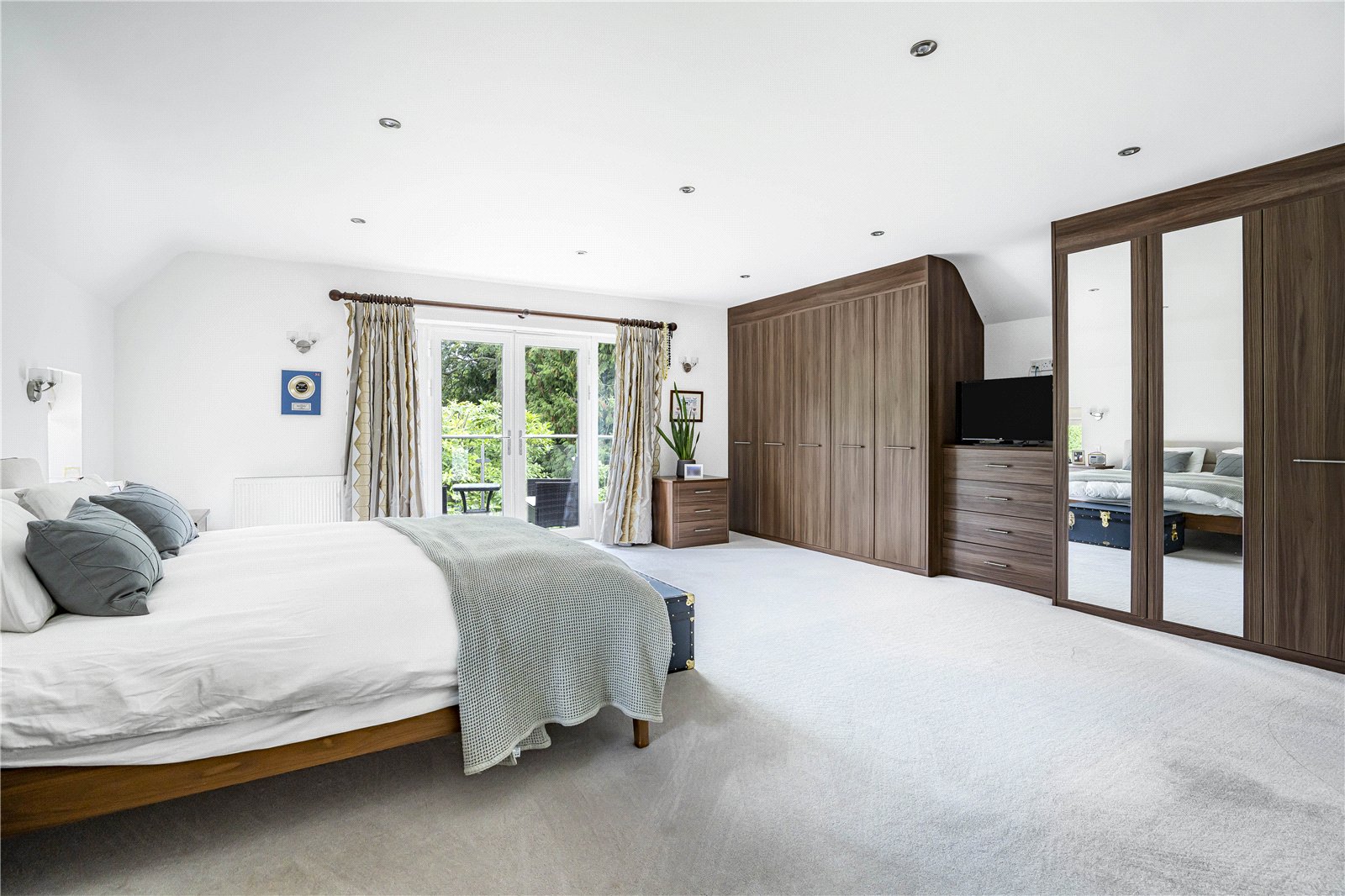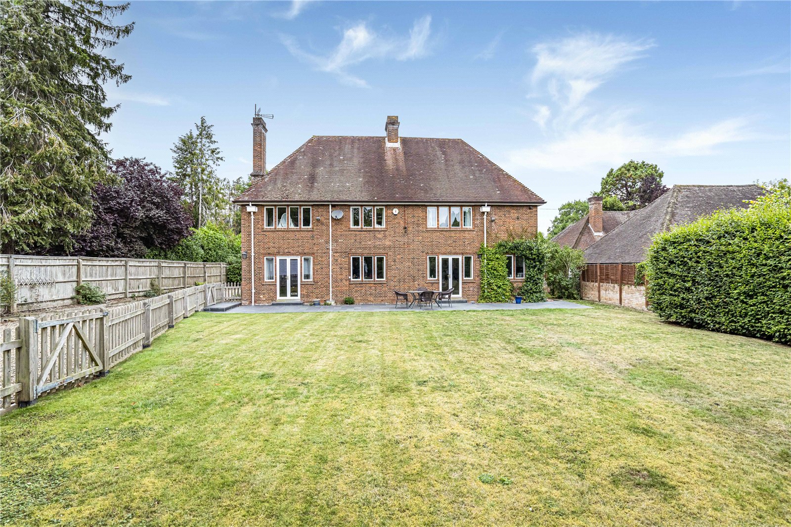 The property has recently undergone significant development, including an impressive two-storey extension. This has created an expansive, open-plan kitchen, dining, and living area that forms the heart of the home. Finished to a high standard, this space is perfect for both everyday family living and entertaining. Full-height French doors open onto a west-facing terrace, ideal for al fresco dining and enjoying the evening sun in the privacy of the beautifully landscaped rear garden.