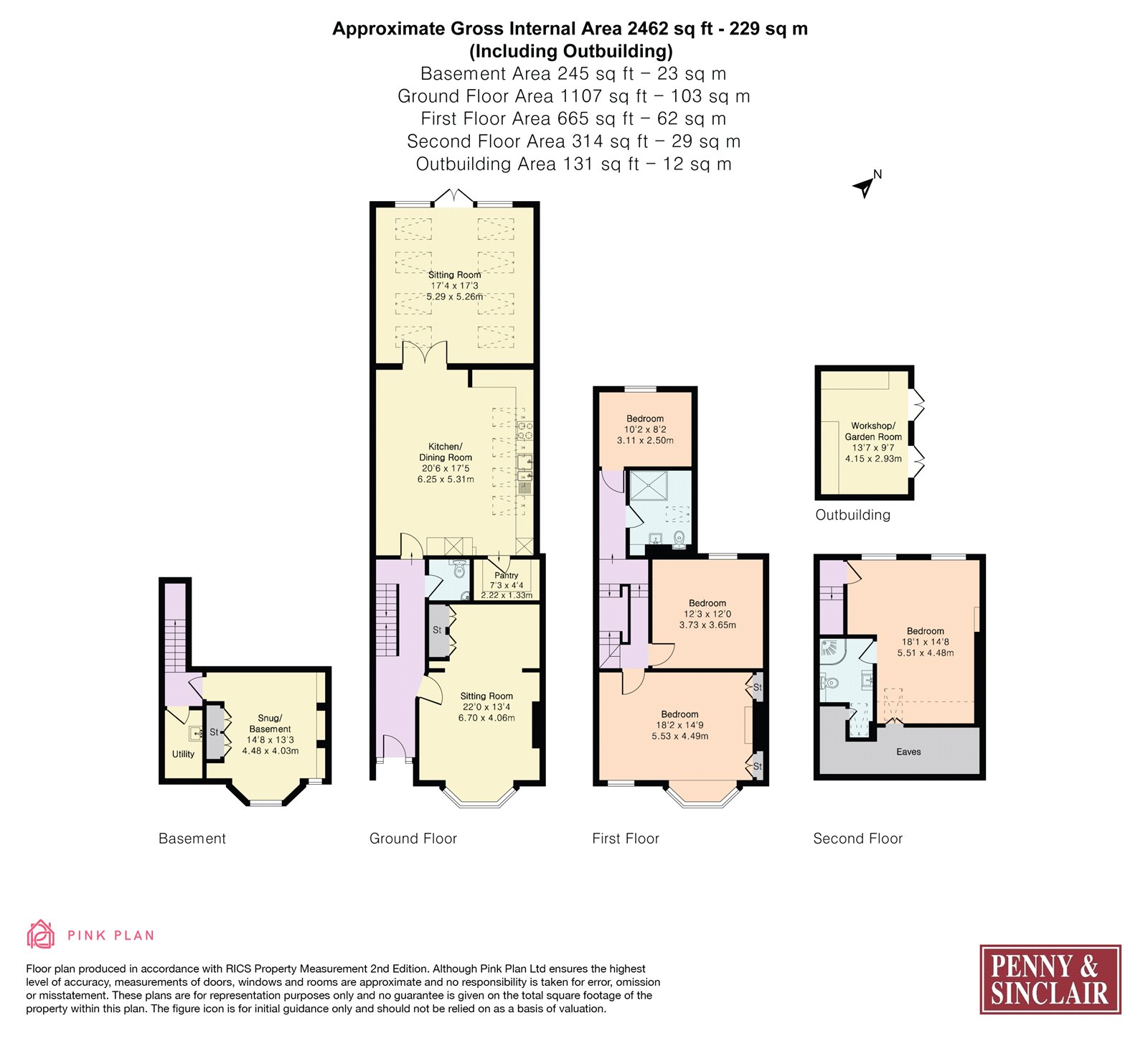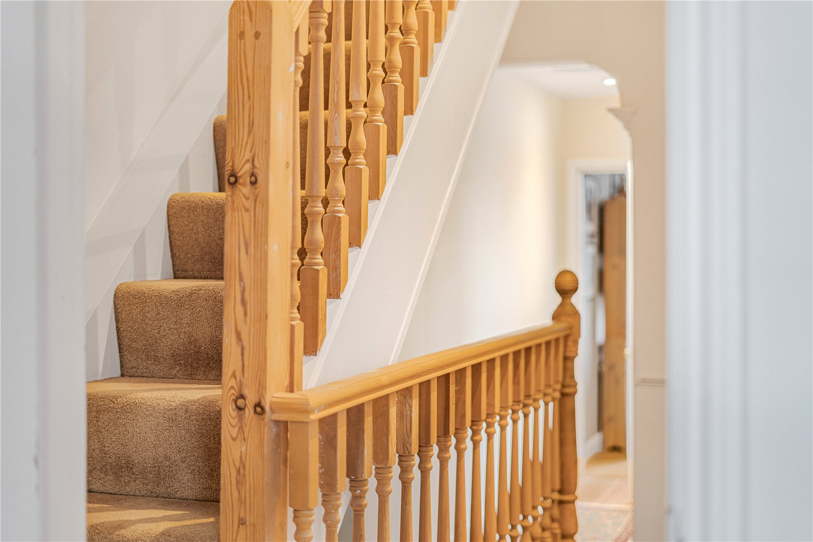 On the ground floor the accommodation consists of entrance hall leading to a double reception room at the front of the house with bay window to front. The hallway leads onto a delightful kitchen/dining room. This room is bright and airy and benefits from a series of Velux windows. There is also a pantry adjoining the kitchen. To the rear of the house there is a stunning sitting room with vaulted ceiling overlooking the landscaped garden. At basement level there is a third reception room, which could be used as a study, snug or bedroom. There is also a utility room on this level.