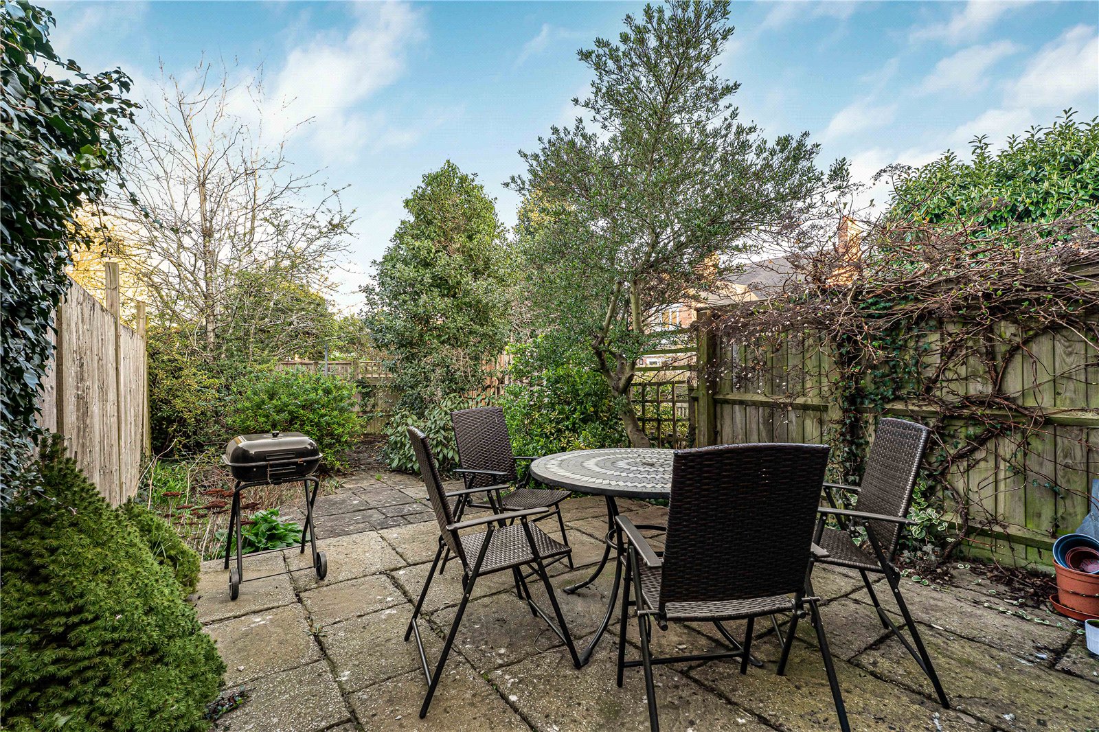 Externally, the property benefits from a private rear garden, providing a pleasant and peaceful outdoor space. There is also rear access via a gate at the rear of the garden opening to a path leading to Harpes Road.