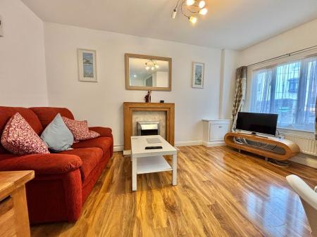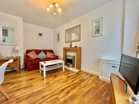 The living area offers ample space for a variety of furniture arrangements and benefits from an electric fireplace, TV point, window, and gas central heating radiator.