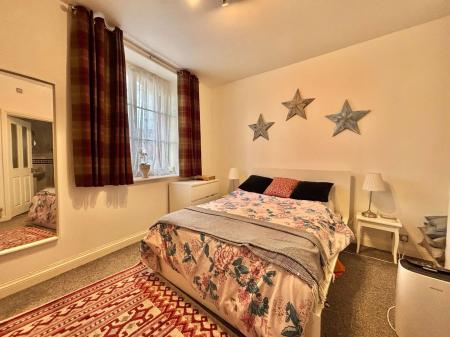 BEDROOM A generously sized double bedroom with window and gas central heating radiator. A door leads to