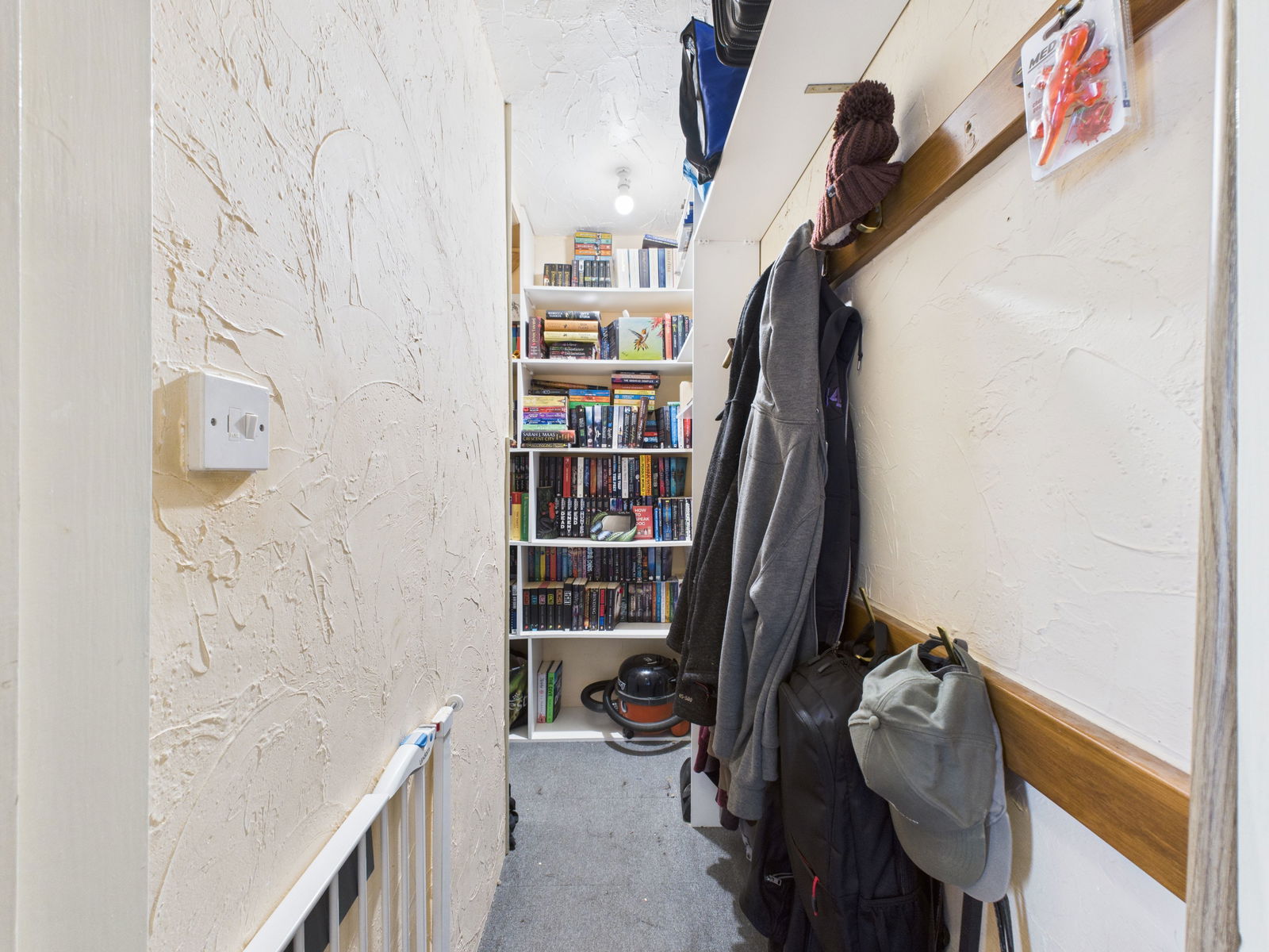 HALLWAY An inviting entrance hallway offering access to all principal rooms. Features include a substantial built in storage cupboard, overhead lighting and a gas central heating radiator.
