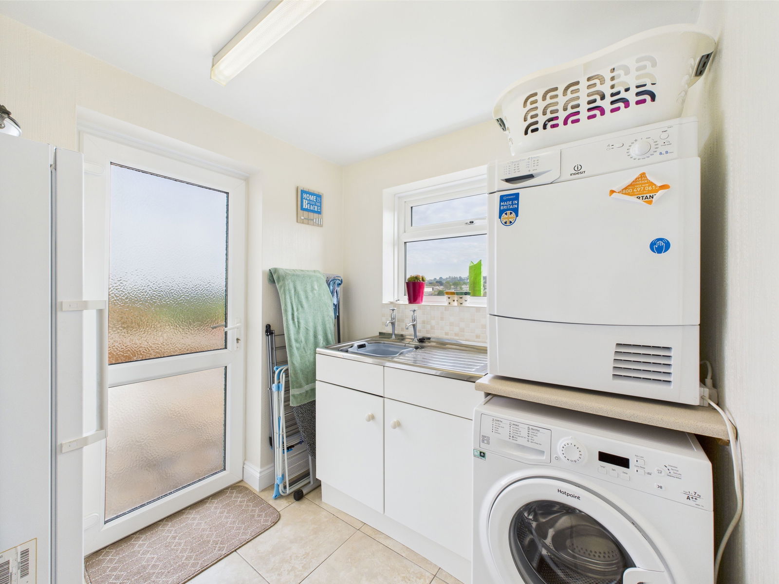 UTILITY ROOM - 2.37m x 2.22m (7'9" x 7'3") A great sized utility room that offers space and plumbing for a fridge, washing machine and dryer, base units to the side with roll edged work surfaces above, a 1 bowl stainless steel sink and drainer unit, uPVC double glazed window and a uPVC double glazed door leading out to the gardens.