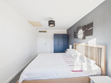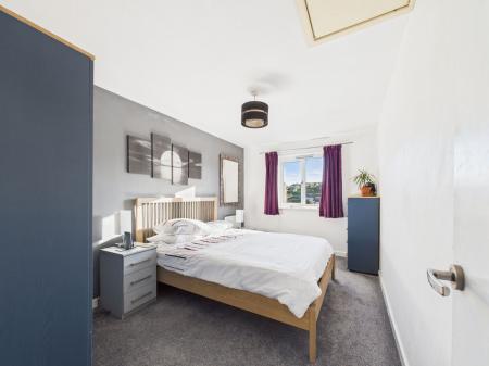 BEDROOM A generous, light filled master bedroom enjoying an open outlook across the allotments and offering distant sea views. Ample space for furniture, with a uPVC double glazed window, loft hatch and electric radiator.