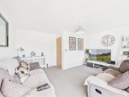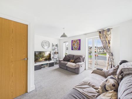 LIVING ROOM A spacious and light filled reception room to the front aspect, featuring uPVC double glazed French doors opening onto a Juliet balcony, additional uPVC window, TV and internet points and gas central heating radiator.
