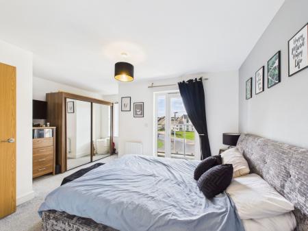 BEDROOM ONE An impressively spacious master bedroom offering an abundance of space, complete with TV point, uPVC double glazed window and door leading to a private balcony. Gas central heating radiator and access to