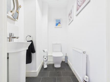 CLOAKROOM A convenient ground floor cloakroom comprising a low level WC and pedestal wash hand basin, extractor fan and gas central heating radiator.