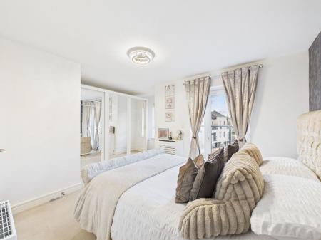 BEDROOM ONE  A spacious and stylish master bedroom located at the front of the home. Features include built in wardrobes, a private balcony accessed via a uPVC double glazed door, additional natural light floods the room from a further uPVC window and a gas central heated radiator. Door leading into:-