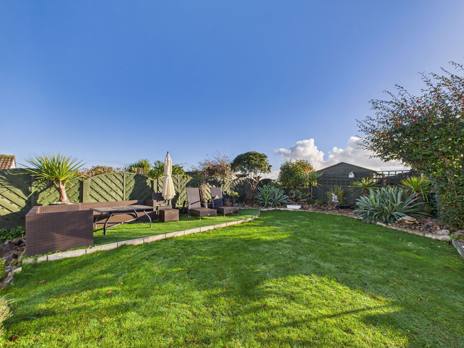 REAR GARDEN Level lawned garden with patio areas nicely enclosed and sunny rear gate.