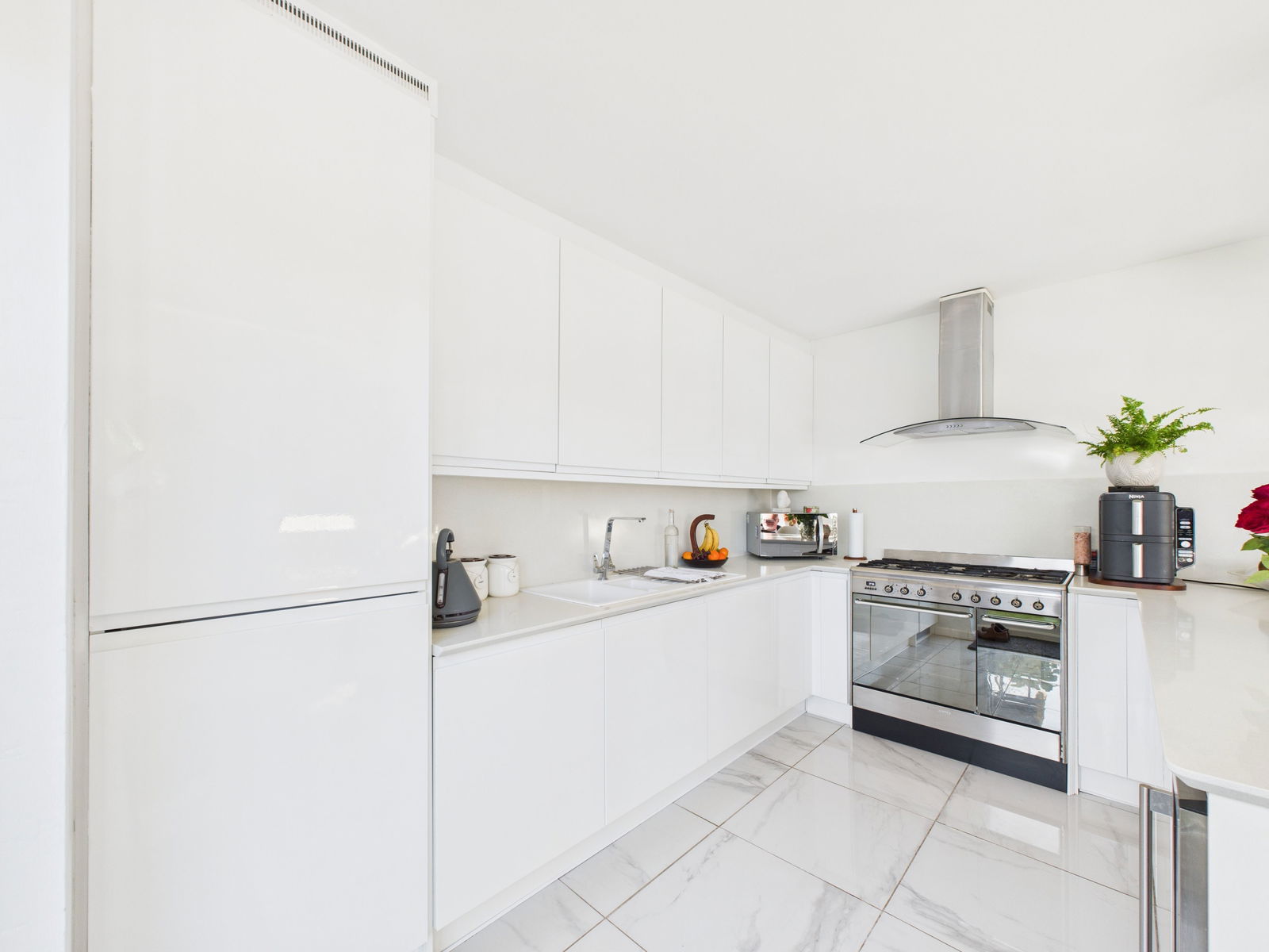 KITCHEN/BREAKFAST ROOM Range of high gloss luxury fitted units, quartz work tops with cupboards and drawers under. Matching wall units above. Concealed washing machine, fridge and two freezers, five burner stove, drinks cooler and matching wall units above.