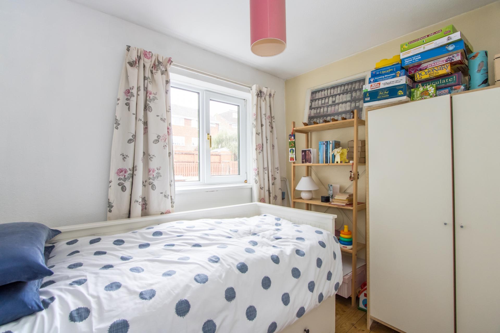 Single bedroom with uPVC double glazed window to the front. Fitted carpet. Built-in cupboard overhead stairs. Central heating radiator. Power points.