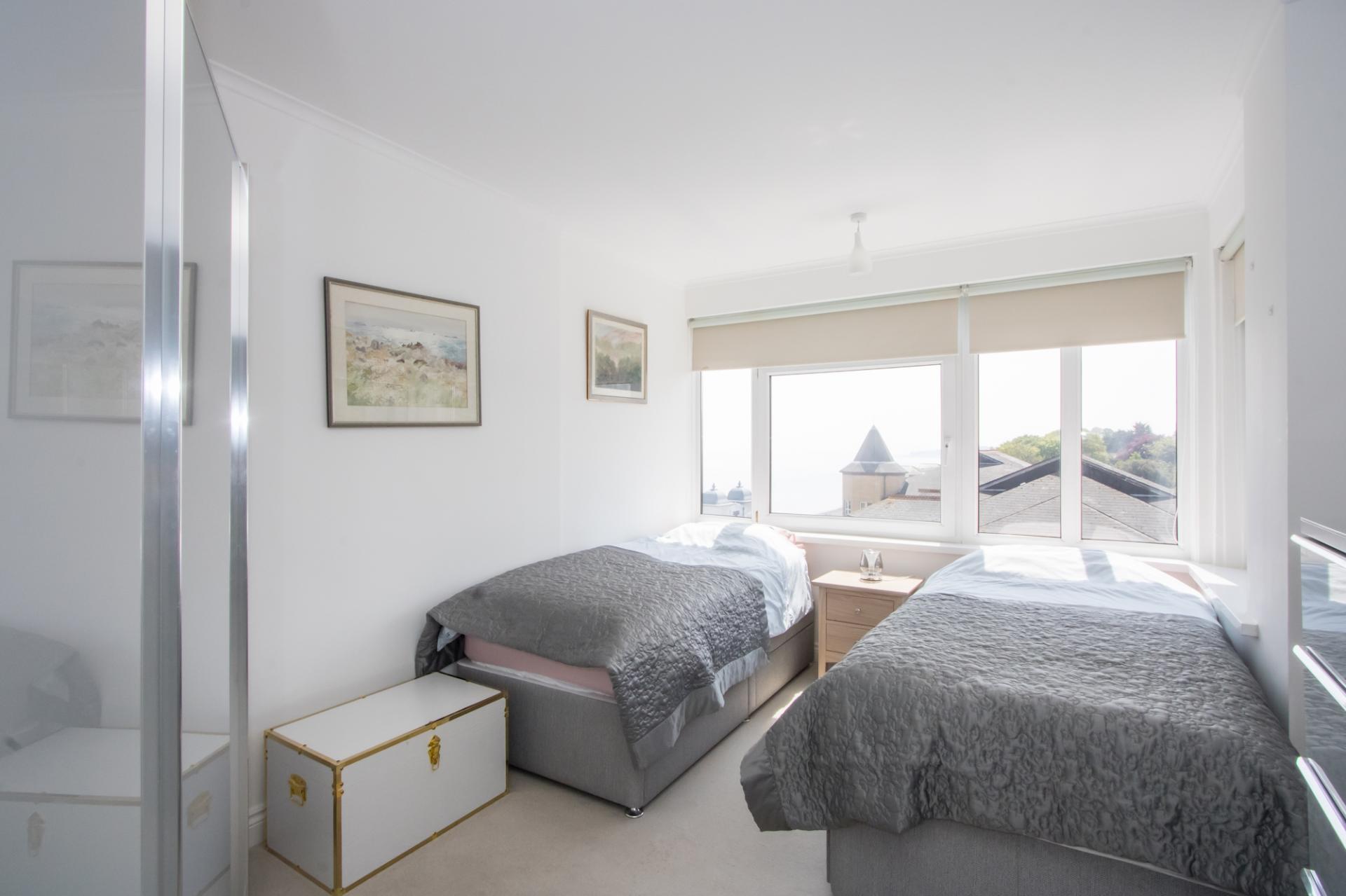 Double bedroom with uPVC double glazed windows looking out over the Esplanade and Bristol Channel. Fitted carpet.