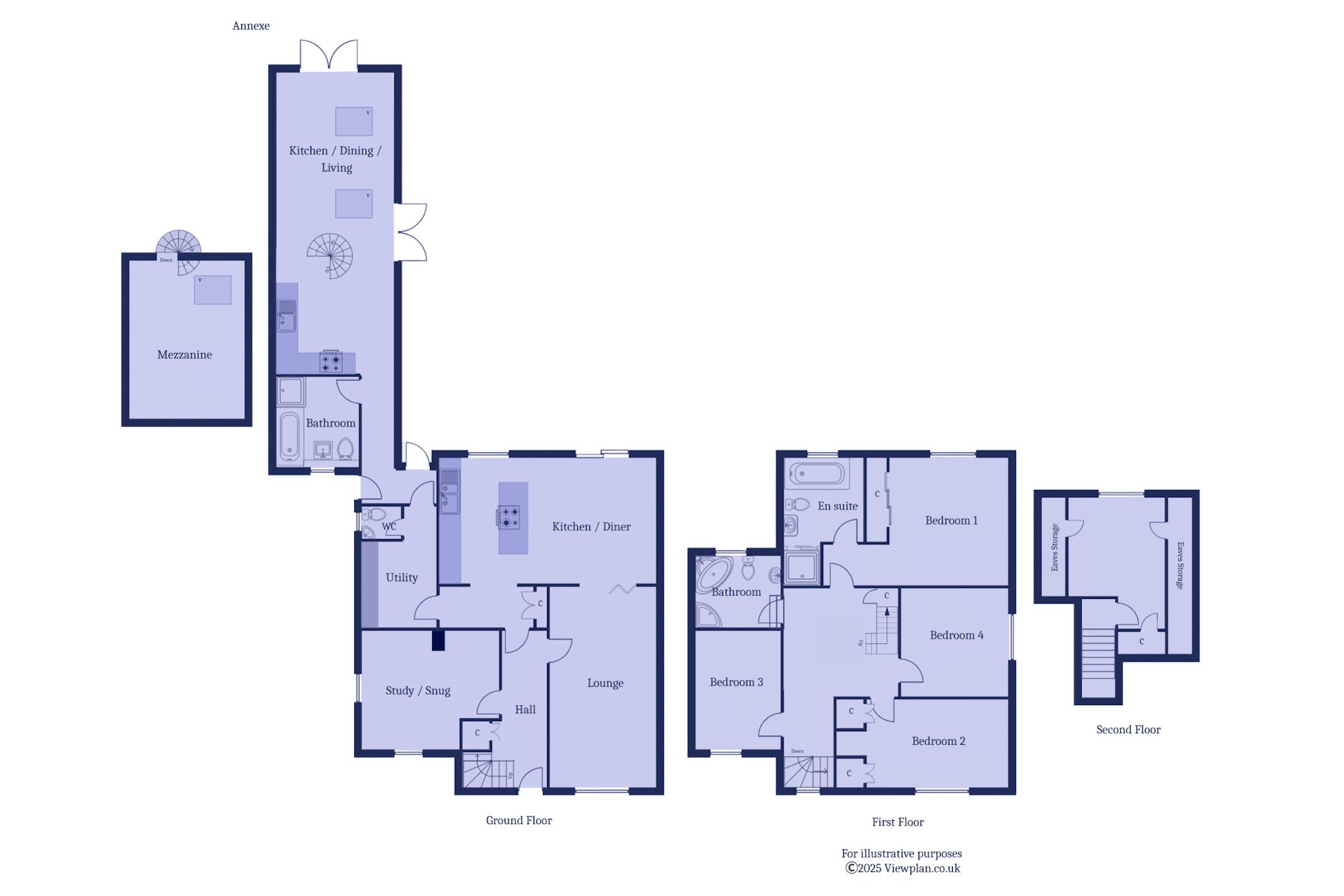 External doors to the side and into the rear garden. Door from the utility room and into the annex bathroom. Open to the main annex.