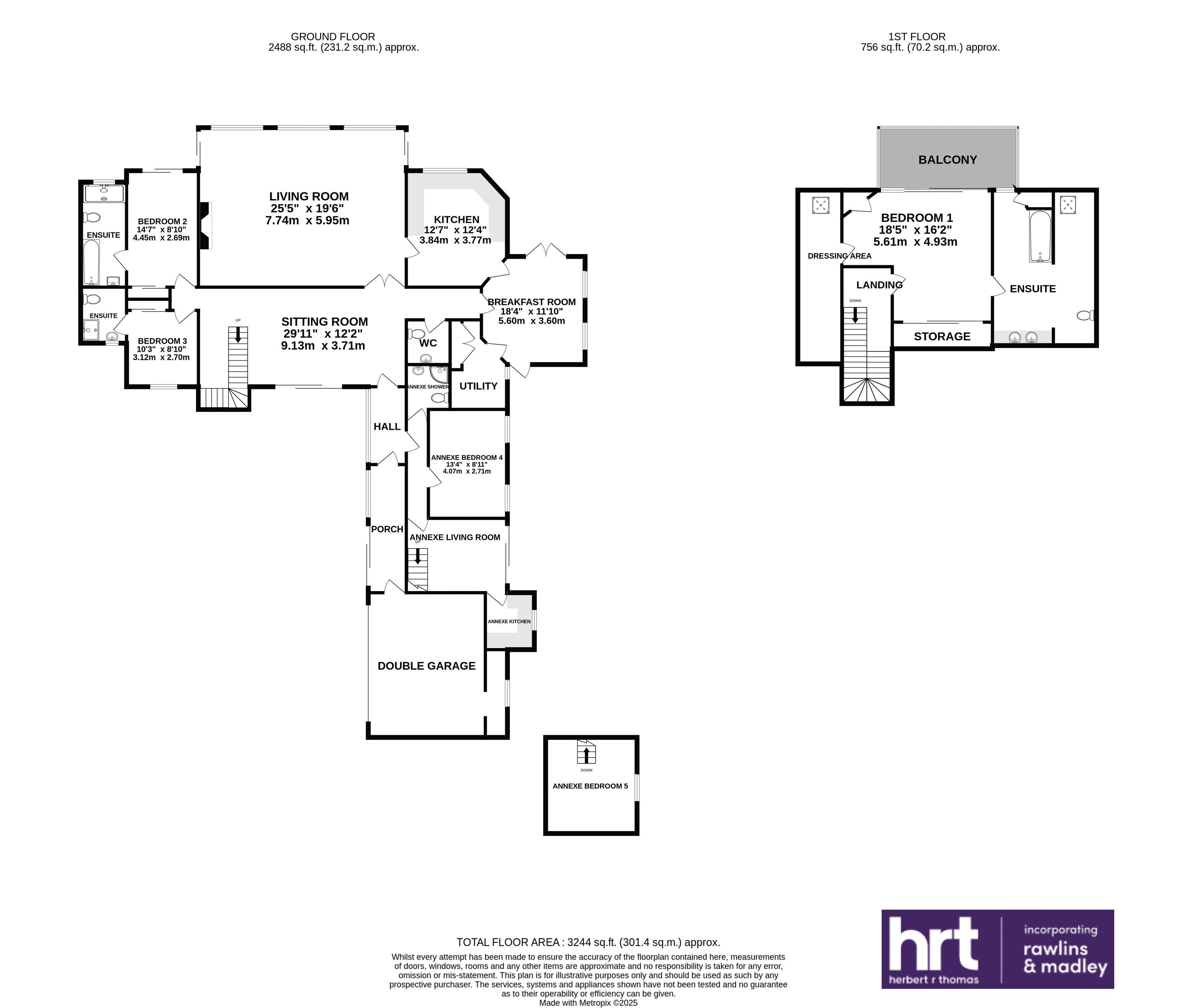 - Linked annex offers a living room, kitchen, two further spacious bedrooms (one currently a home office/study) and a shower room.