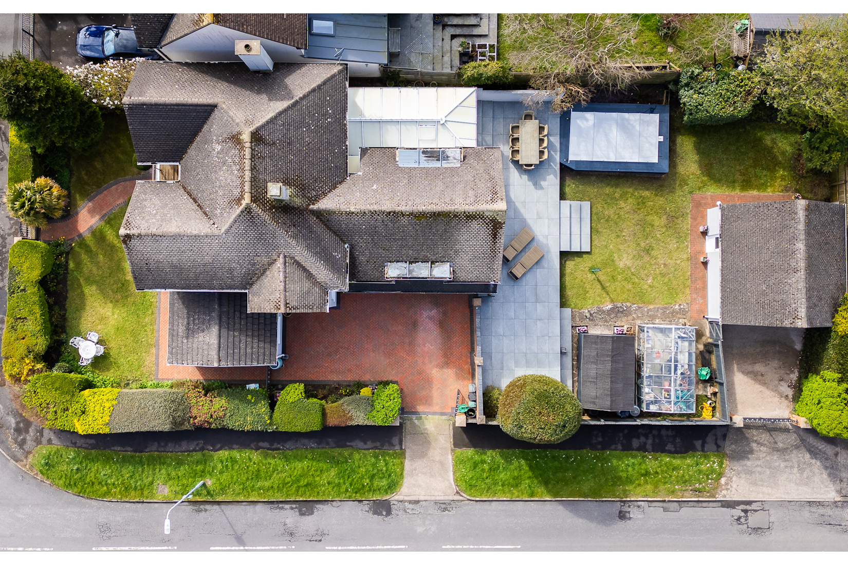 An enclosed rear garden over two levels, with a westerly aspect. There is a sizeable paved patio on the upper level with plenty of space for outdoor furniture of all kinds. This steps down onto the lawn. There is an endless swimming pool, outside power sockets, lights, a timber shed and greenhouse. From the garden, you have access into the garage as well as to the driveway.
