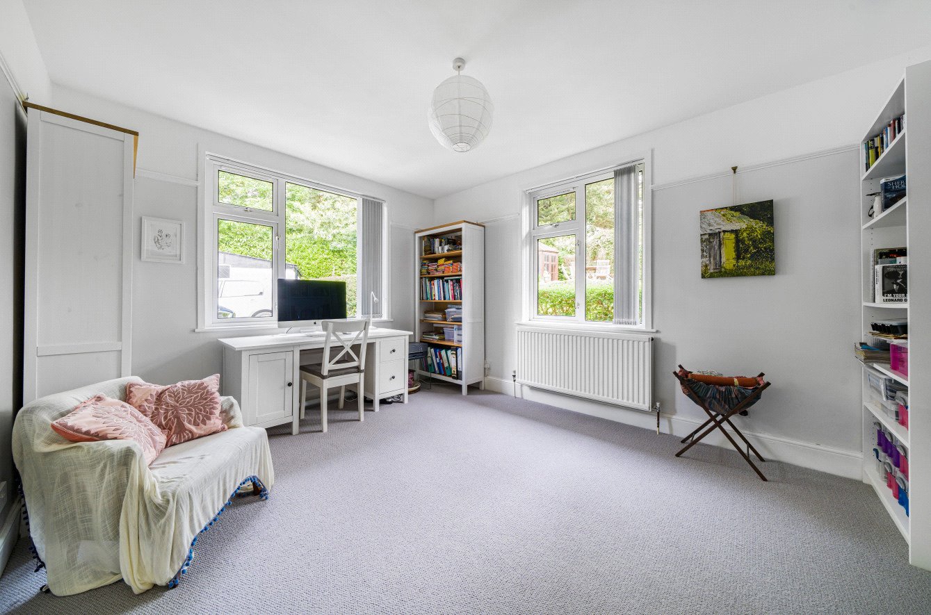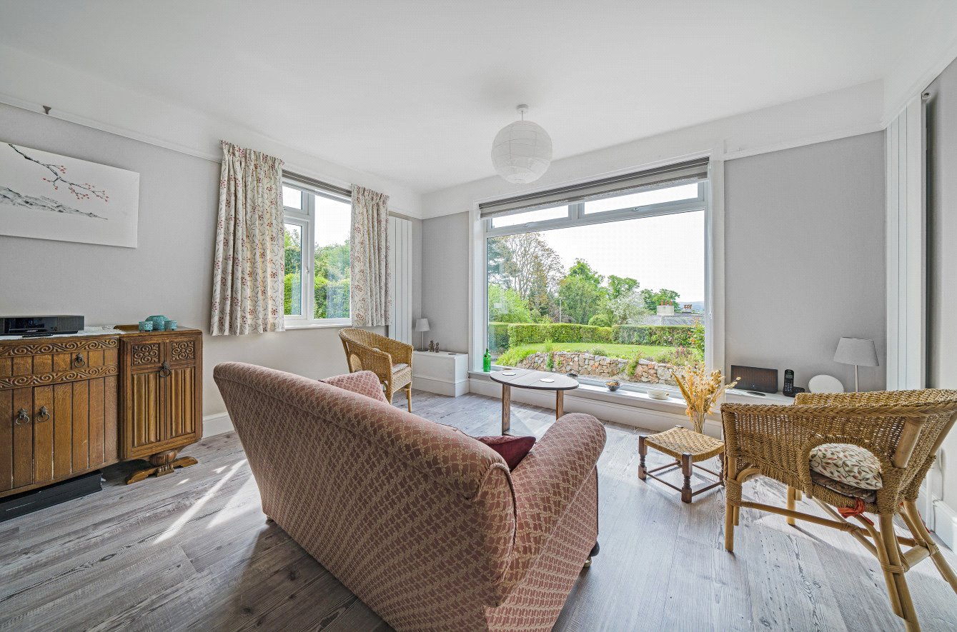 The ground floor includes an entrance porch and a welcoming central hallway, leading to a bright and generously proportioned sitting room with a log-burning stove. A further ground floor room offers flexibility as a home office, playroom, or fifth bedroom. The large kitchen/family room has been thoughtfully remodelled to a high standard, featuring a picture window that frames the open outlook. A stylish and contemporary ground floor bathroom with separate shower completes the layout on this level.