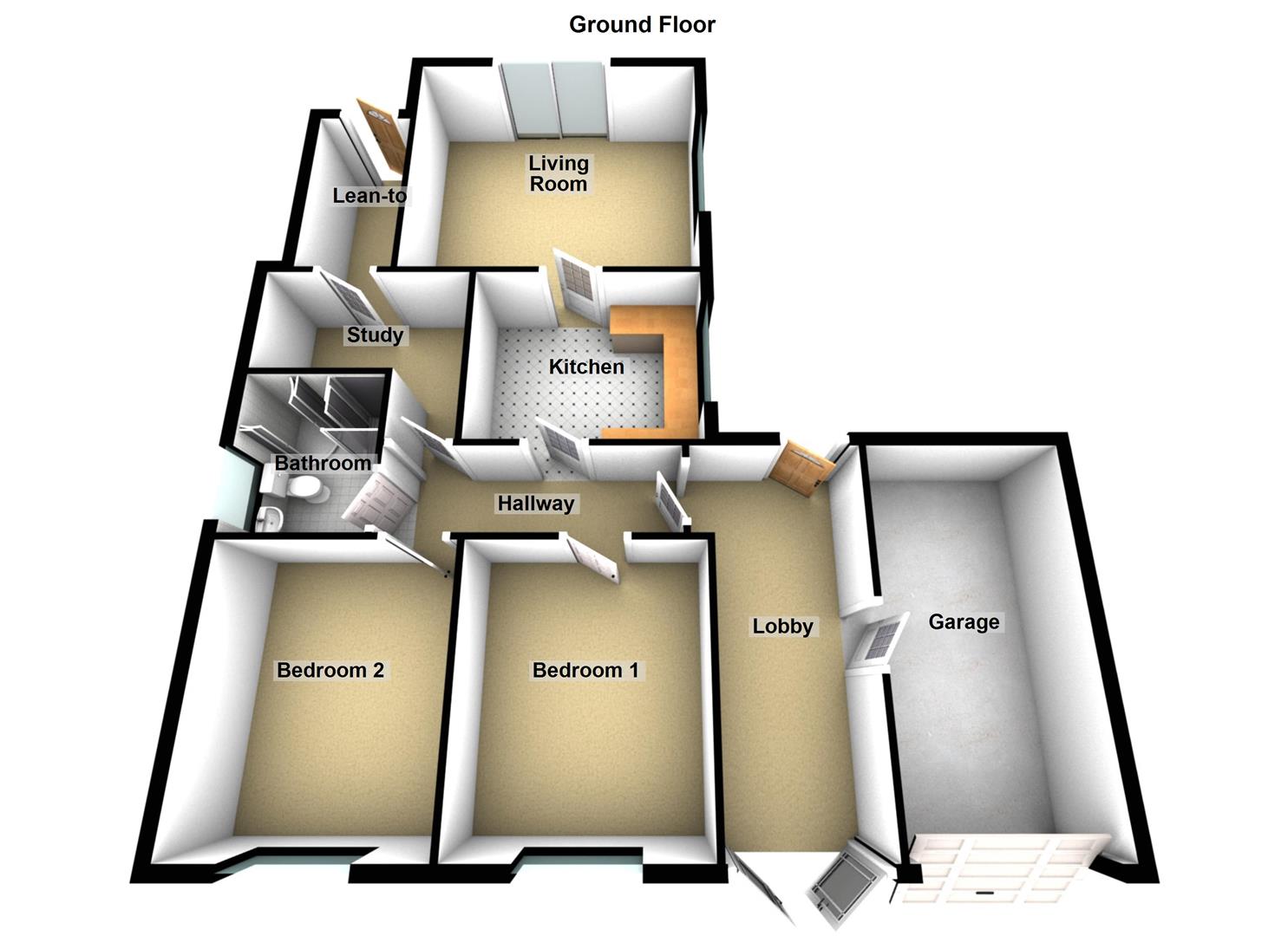 Inside, the hallway features high ceilings and leads to all rooms. There are two double bedrooms to the front aspect, a four-piece family bathroom with separate bath and shower cubicle, and a versatile study/snug with access to a lean-to area and the rear garden. The kitchen/diner offers a fitted range of base and eye-level units, space for appliances, and room for a dining table and chairs. To the rear is a bright and spacious living room with patio doors opening to the garden.