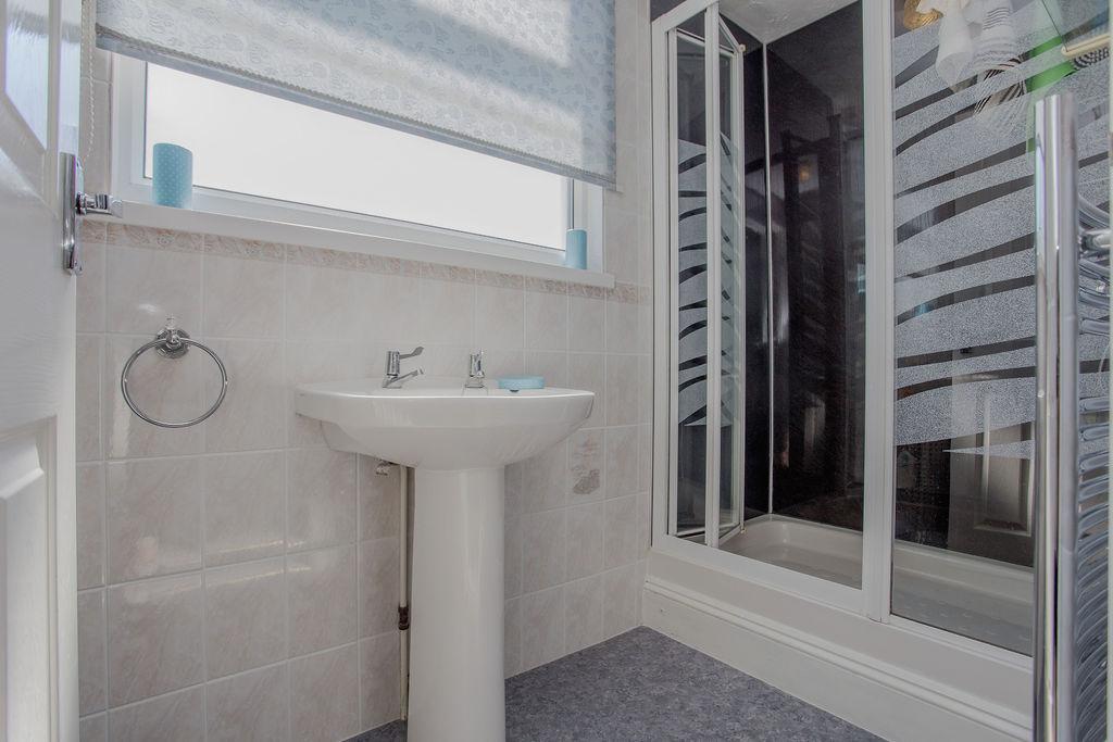 SHOWER ROOM: 8'3" x 6'7" (2.51m x 2.01m), uPVC double glazed window to front elevation. Tiled flooring. Fully tiled walls. Vanity unit incorporating sink and low level W.C, shower cubicle incorporating shower unit and privacy sliding glass door. Towel rail radiator. Cupboard offering storage space.