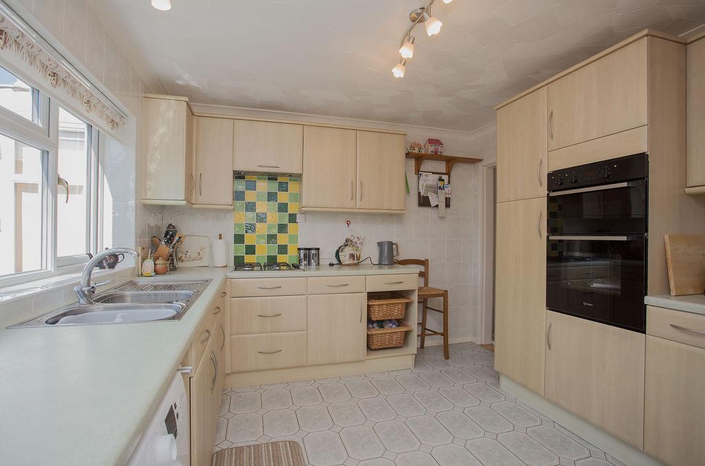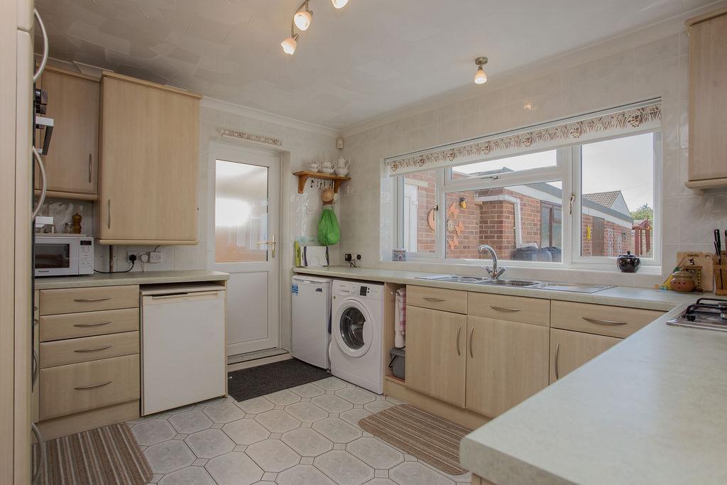 KITCHEN: 12'0" x 10'6" (3.66m x 3.20m), Range of eye and base level units with worksurface over. Fully tiled walls. Lights to ceiling. Space for washing machine, fridge and freezer. Gas hob with extractor hood over. Integrated Indesit oven. Stainless steel double sink with drainer and mixer tap over. Worcester gas boiler. uPVC double glazed window to rear elevation and u PVC double glazed door leading to the side of the property.