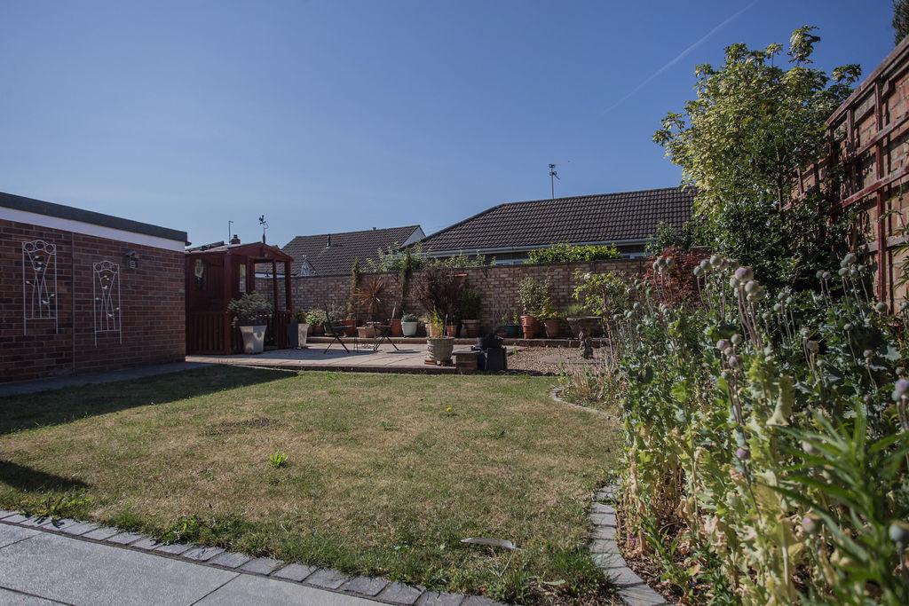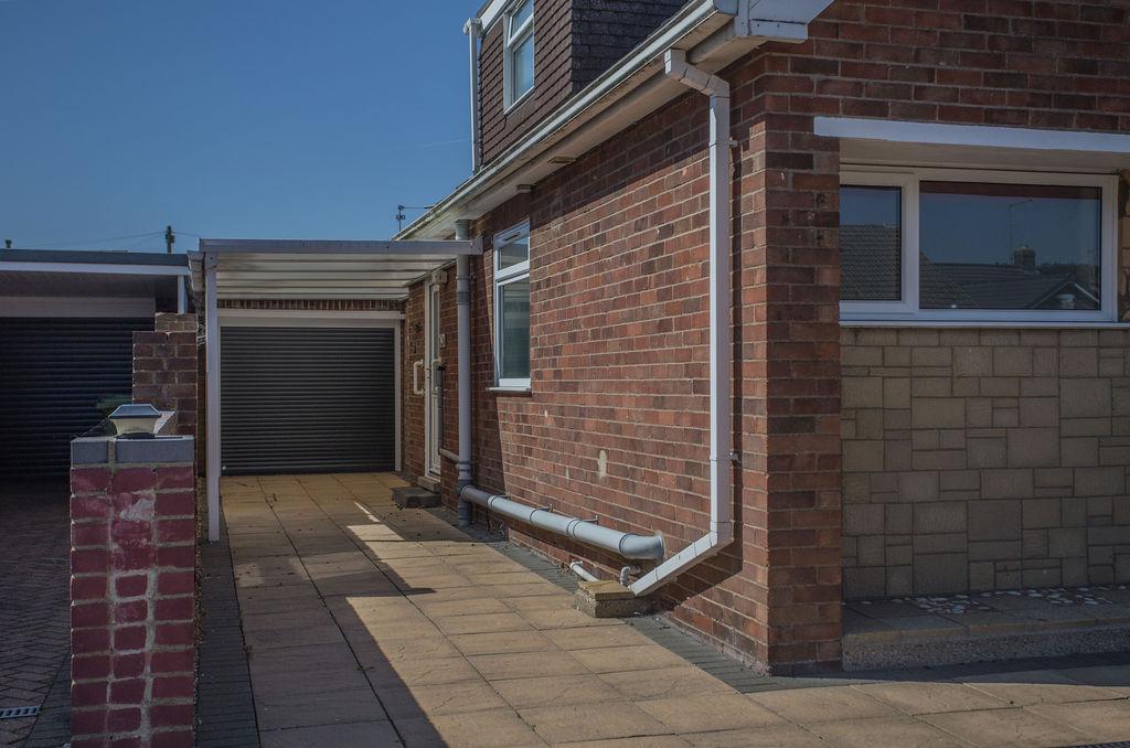OUTSIDE FRONT: Driveway to front of property offering off road parking driveway leading to carport and garage. Area laid to slate chippings with borders and shrubbed area. Brick wall and fenced boundaries. Pathway to other side of property leading to gated access to rear garden.