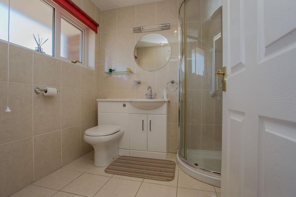 ENSUITE: 10'6" x 4'0" (3.20m x 1.22m), Low level W.C, wash hand basin and shower cubicle incorporating Bristan shower unit and bi-fold privacy screen. Fully tiled splashbacks. uPVC double glazed window to side elevation. Towel rail radiator.