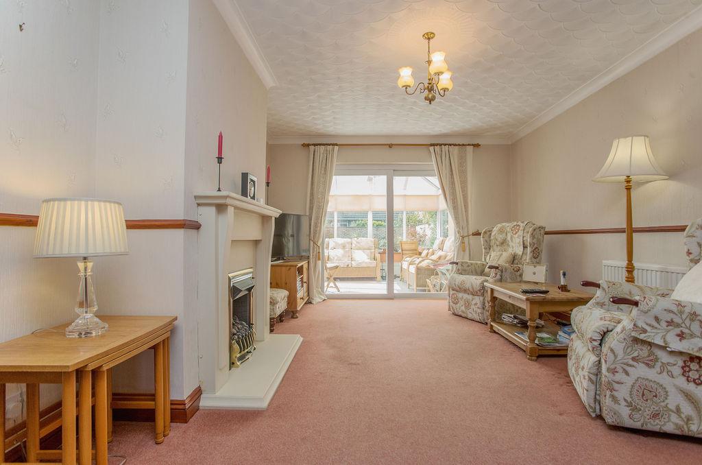 LOUNGE: 17'1" x 11'0" (5.21m x 3.35m), Radiator. Coved and textured ceiling. Dado rail. Fireplace featuring fire and surround and hearth. uPVC double glazed sliding door into: