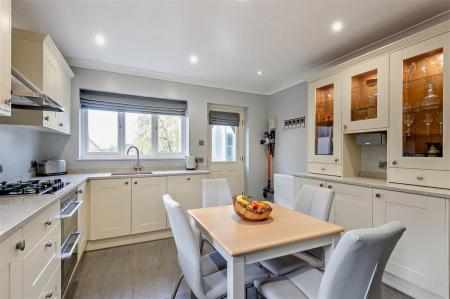 The quality re-fitted kitchen/breakfast room includes integrated appliances of fridge-freezer, 4 ring hob and double oven. The rear garden and decking area may also be accessed from the kitchen.