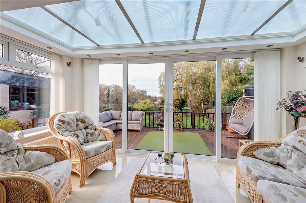 A substantial and beautifully extended detached character bungalow, it sits proudly on a generous plot overlooking the countryside with fields to both the front and rear of the property.