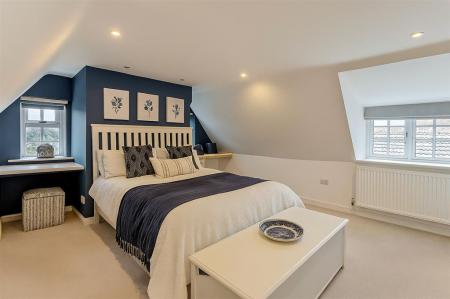 Bedroom two benefits from two rear windows overlooking the river, side dormer window and tongue and groove fitted wardrobes, window seat and dressing table and drawers.