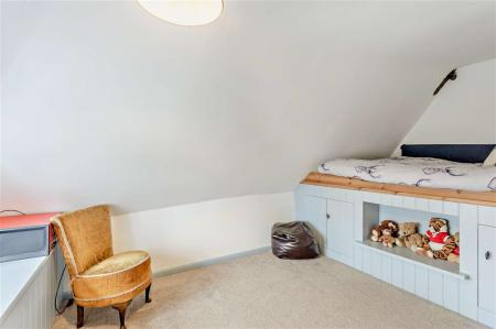 Bedroom three is an L-shaped room with two front aspect windows, built-in double bed with storage beneath, window seat and an additional storage cupboard.