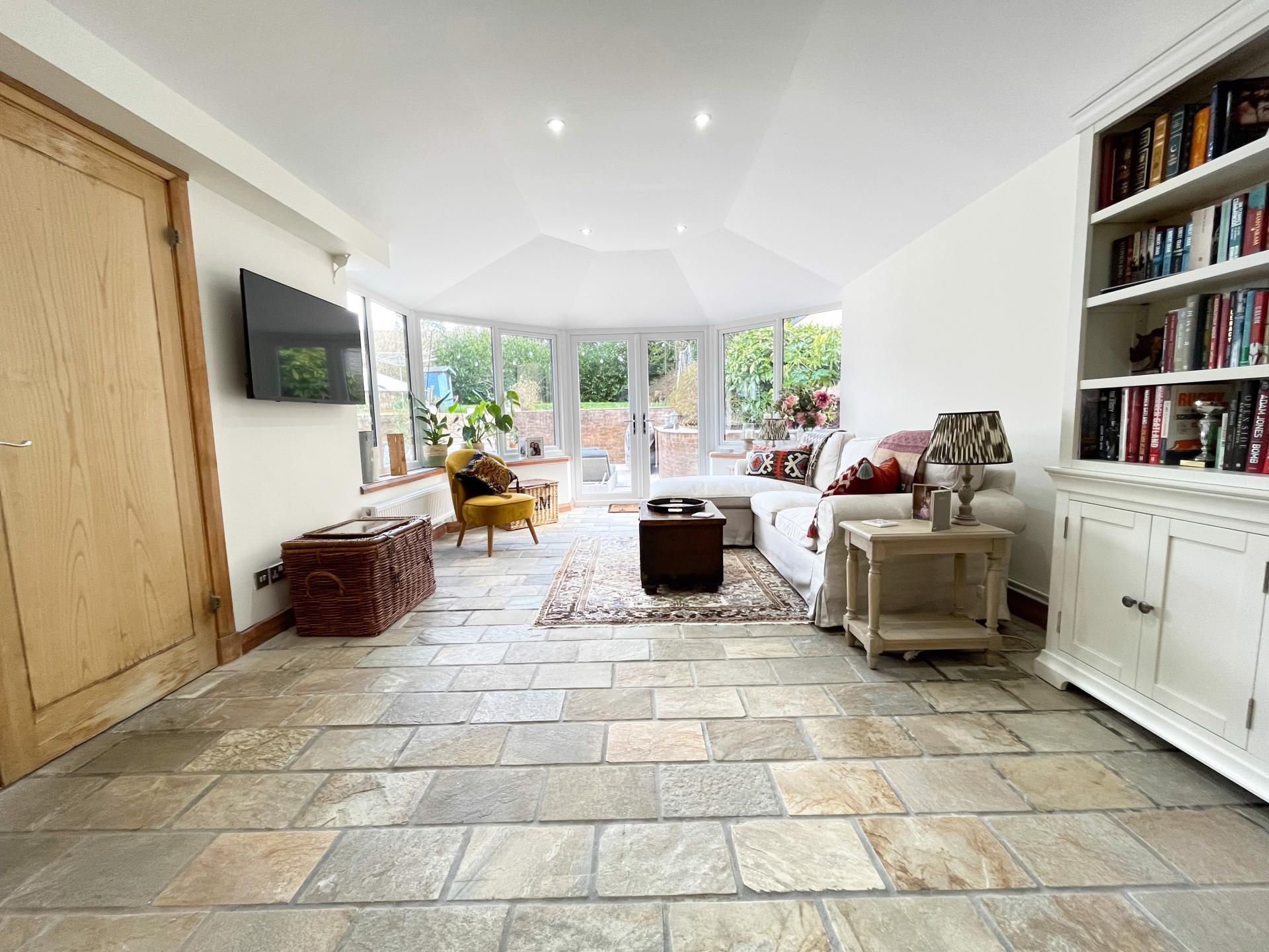 - Entrance hall and cloakroom, living room with wood burning fire, sitting room, study/ gaming room and large dining room, open plan to kitchen, utility room and boot room
