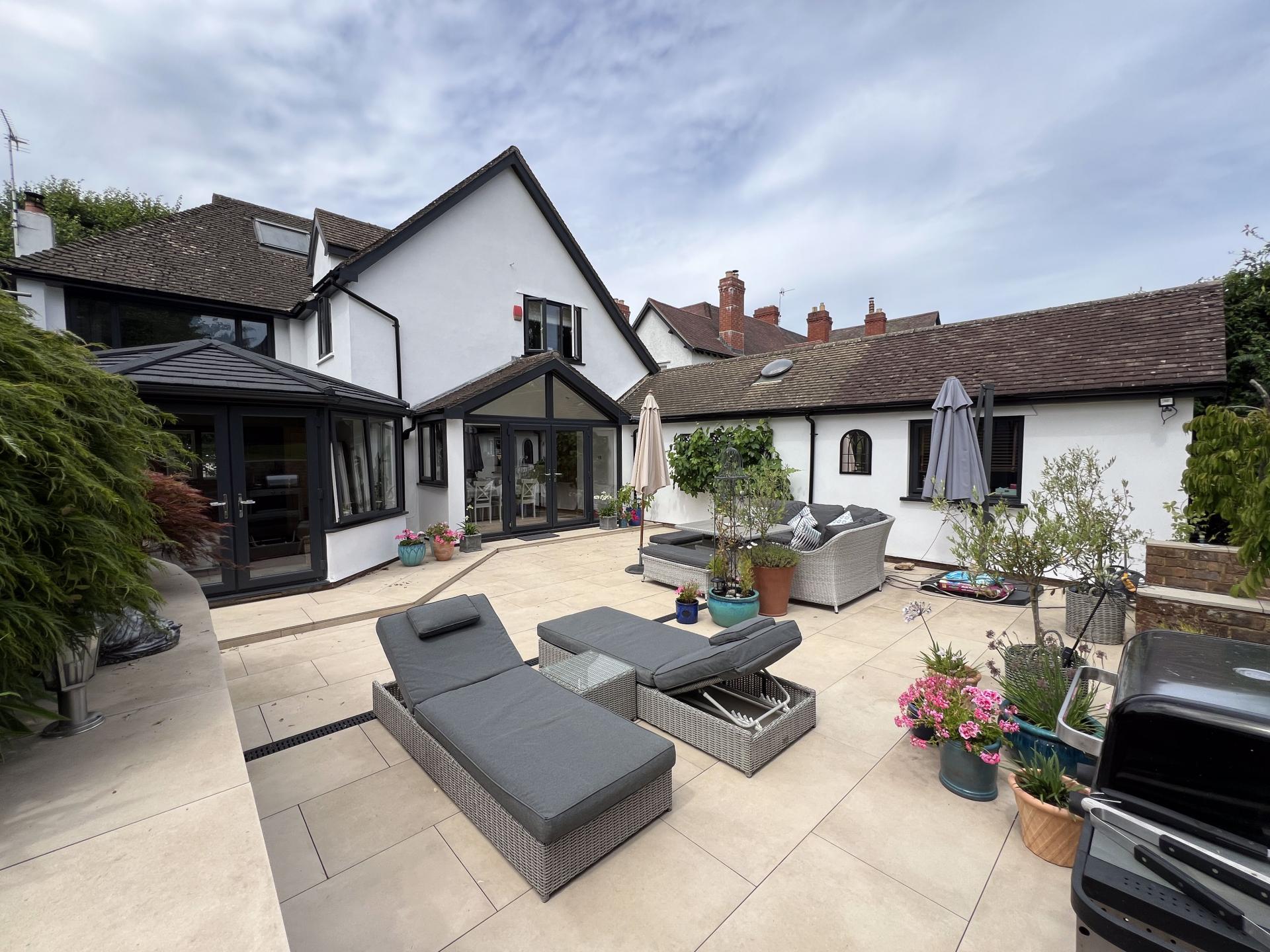 - Private and south facing rear garden with large, sheltered paved sitting area and lawn