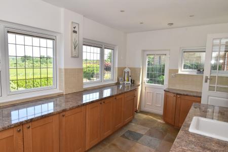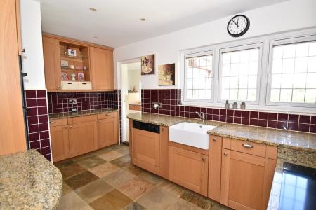 15' 0" x 9' 6" (4.57m x 2.90m) Double glazed window to side and rear. Range of base and wall units. White sink unit with water softener. Integrated freezer. Plumbing for washing machine and space for tumble dryer. Worcester oil boiler. Downlighting. Tiled floor. Double glazed door to garden. Double glazed door to conservatory.