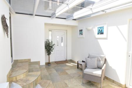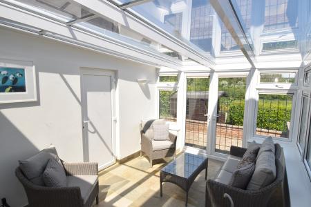 17' 8" max x 10' 2" max (5.38m x 3.10m) Steps down to main room. Double glazed windows to side and rear. Double glazed doors to patio. Double glazed door to front of property. New glass roof fitted approximately three years ago. Tiled floor. Door to garage.
