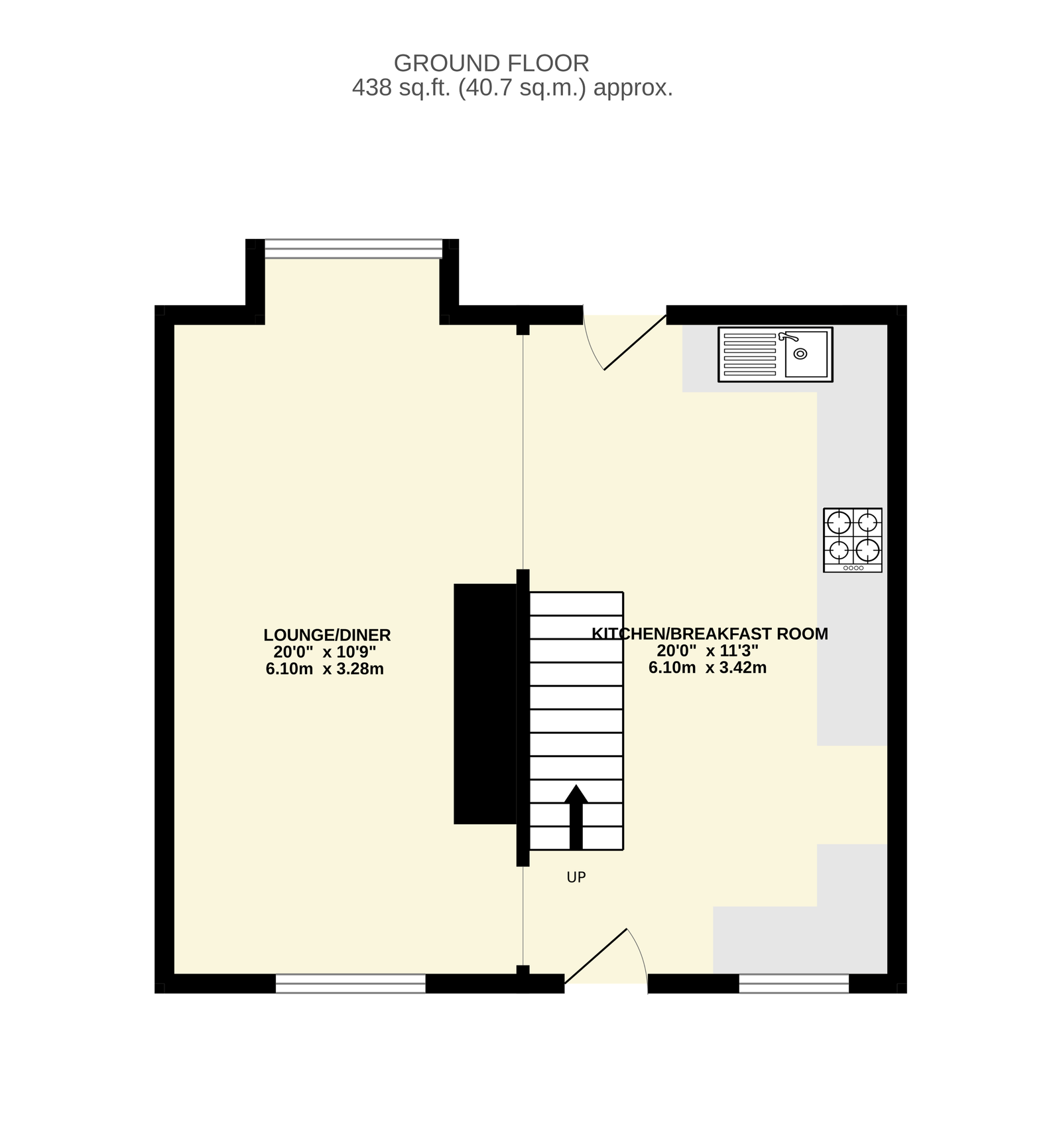 PVCu double glazed window to front. PVCu double glazed bay window to rear, radiator. This area is open plan with the kitchen/breakfast room.